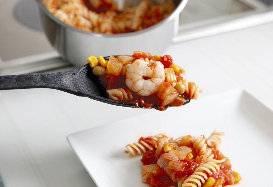 これ一本でマルチに使える。すくう・炒める・煮込む・アク取り ナイロン樹脂製のため、フッ素加工のフライパンやお鍋も傷つきにくくなっています。