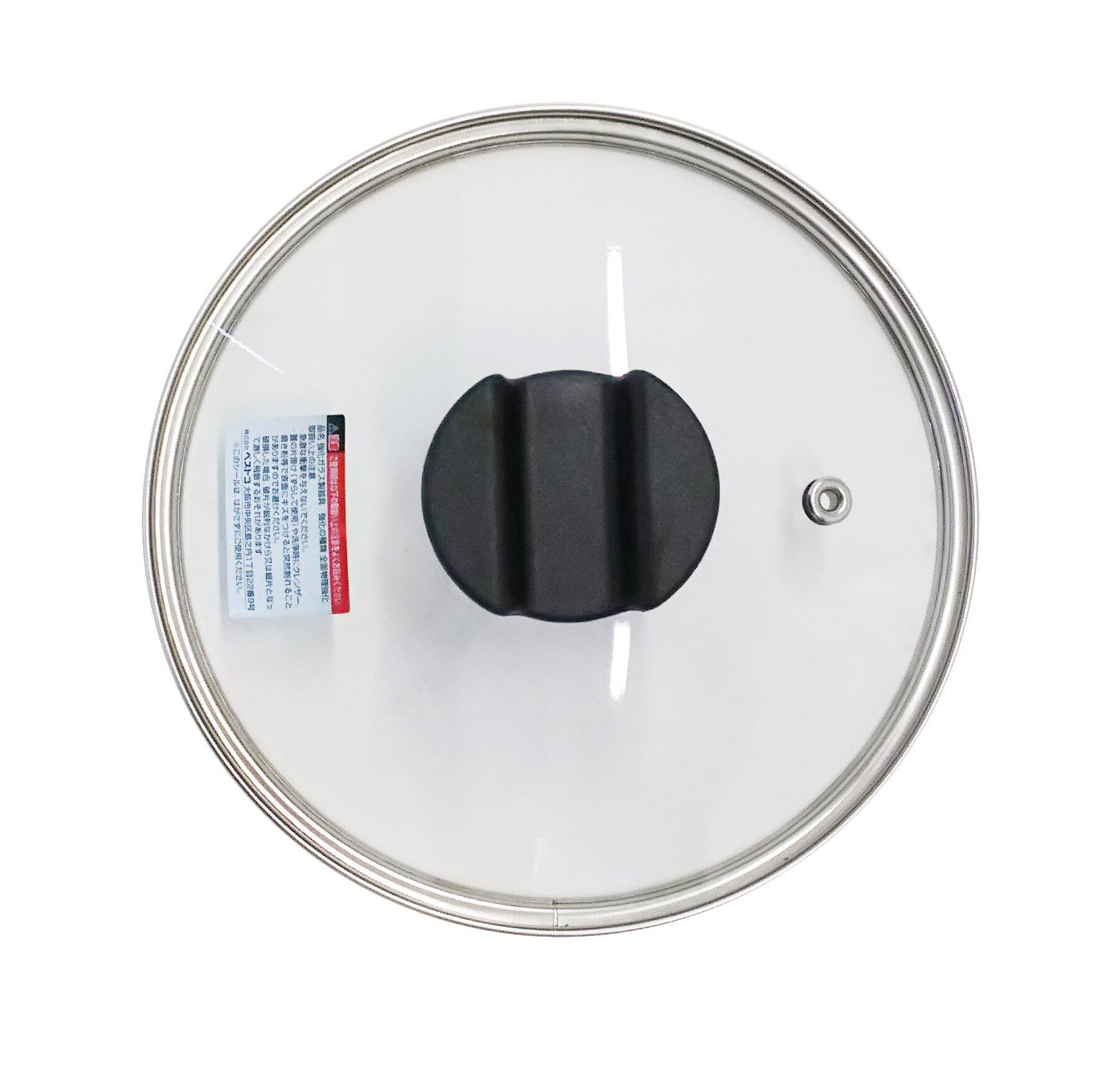 料理のでき具合がよくわかるガラス蓋です。つまみの上に菜箸やお玉が置ける便利なタイプです。