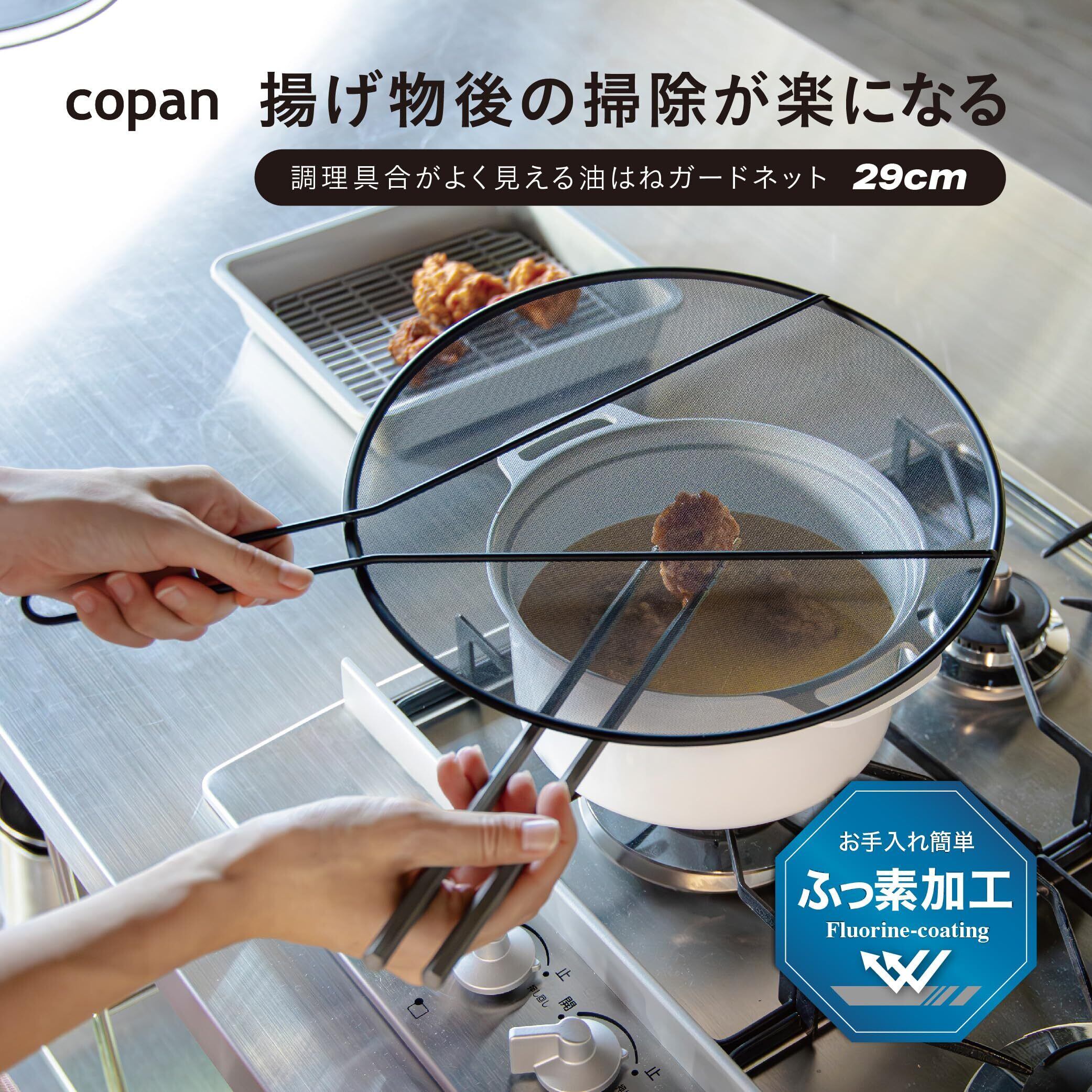 シービージャパン 油はねガードネット 29cm 調理具合がよく見える 飛び散り防止 湯切り ふっ素樹脂加工 copan
