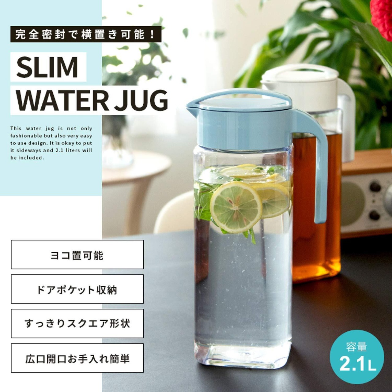 完全密封で横置き可能な冷水筒「ドリンク・ビオ」2.1L