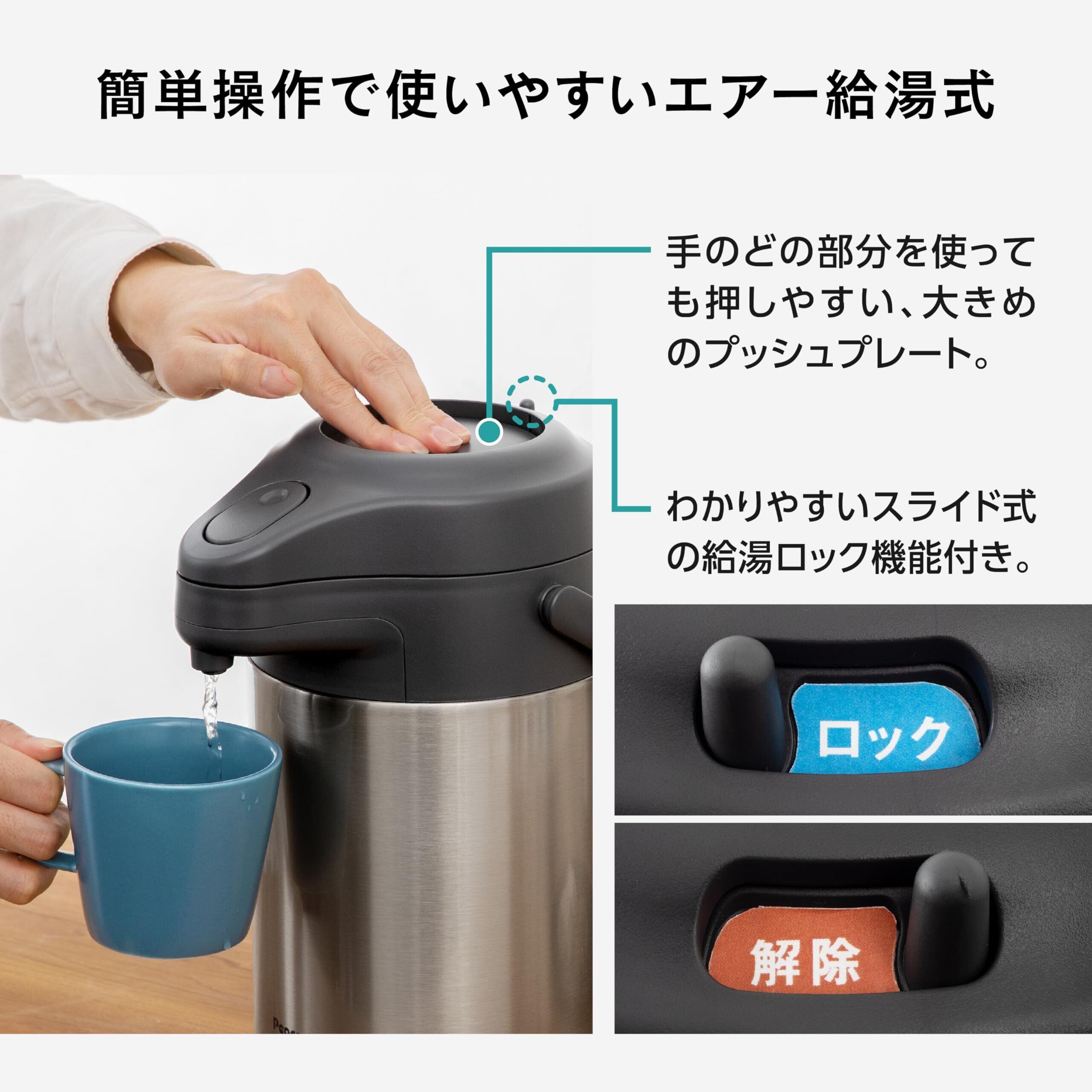 【電気いらずで保温保冷できる】ピーコック魔法瓶 ステンレス エアーポット 2.2リットル 保温 保冷 省エネ 広口 魔法瓶 ポット 卓上 湯沸かし 給水 節電 省エネ2.2L MRS-22 XA | kireimode