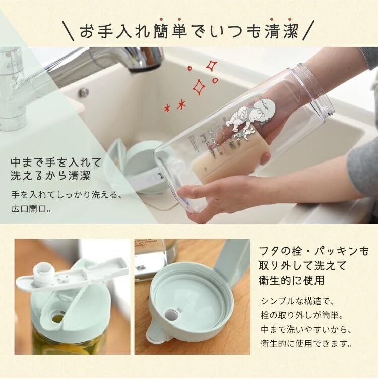 資材:本体/AS樹脂、栓/メタクリル樹脂、フタ/PP、止め具/ポリアセタール、パッキン/シリコーンゴム
