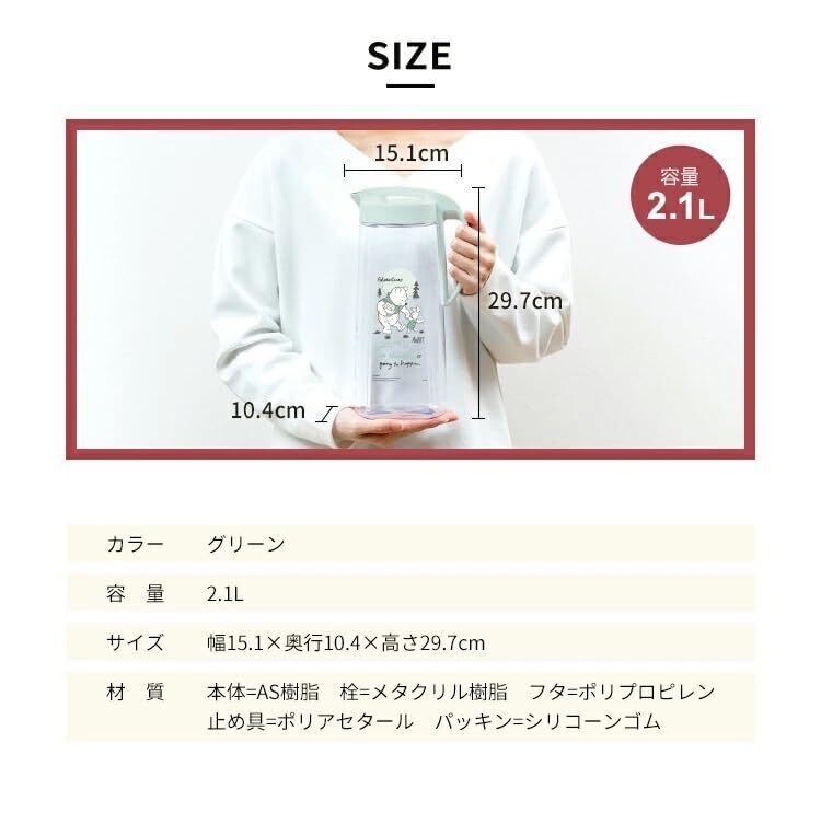 アスベル 麦茶ポット 冷水ポット ドリンクビオ2100C プーさん 2.1L ワンプッシュ 縦横置き グリーン PO23