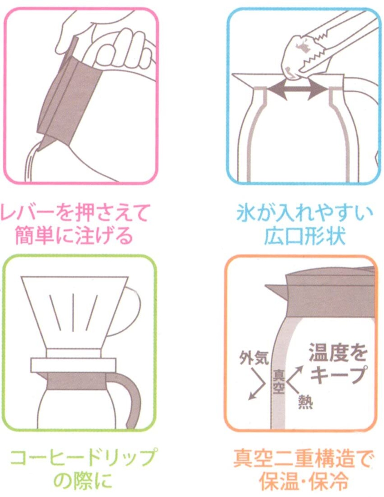 真空二重構造で保温と保冷ができる魔法瓶