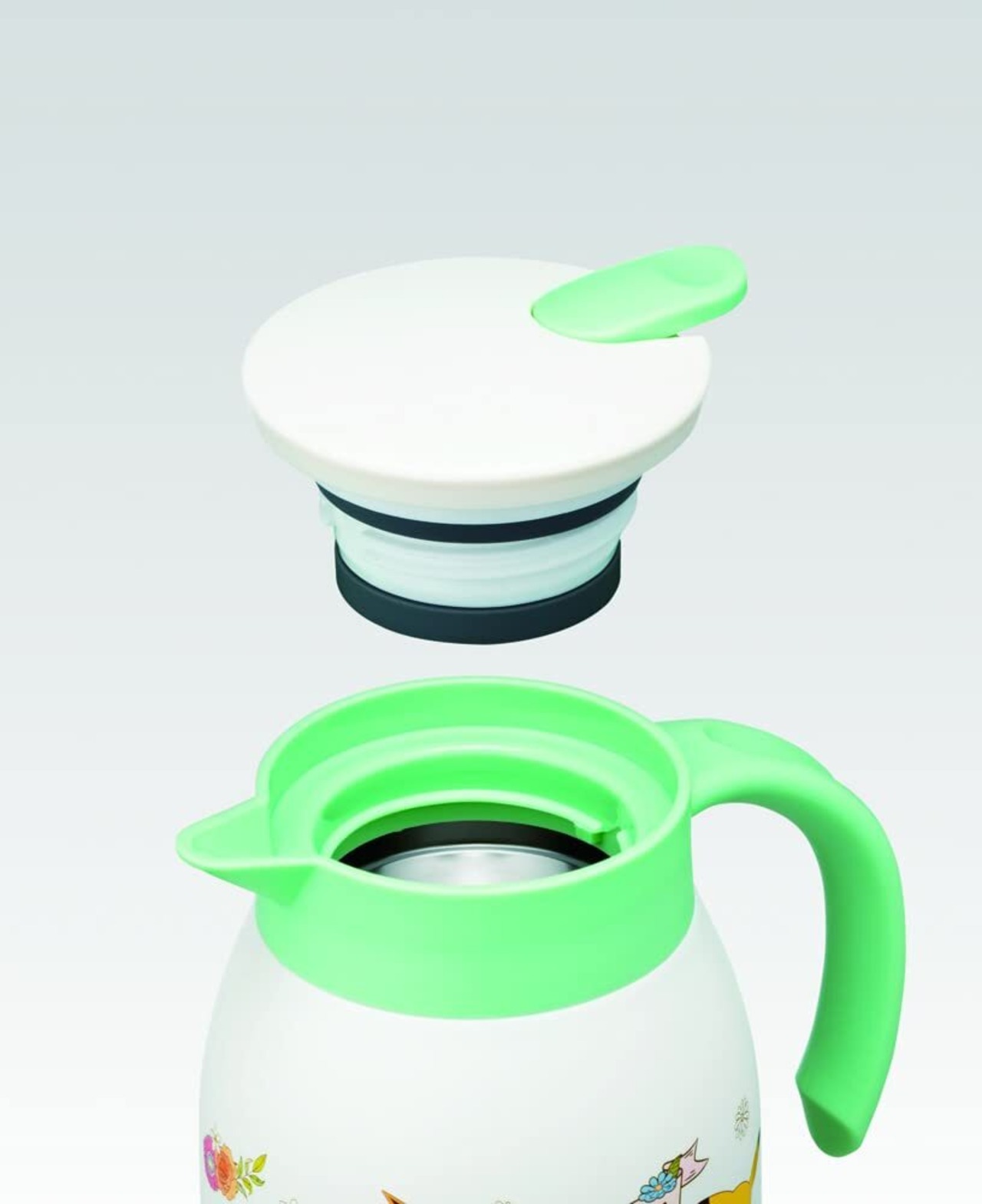 素材・材質:内びん=ステンレス鋼 胴部=ステンレス鋼(アクリル樹脂塗) フタ・ハンドル・底部=ポリプロピレン レバー=ABS樹脂 パッキン=シリコーンゴム 底板=エラストマー