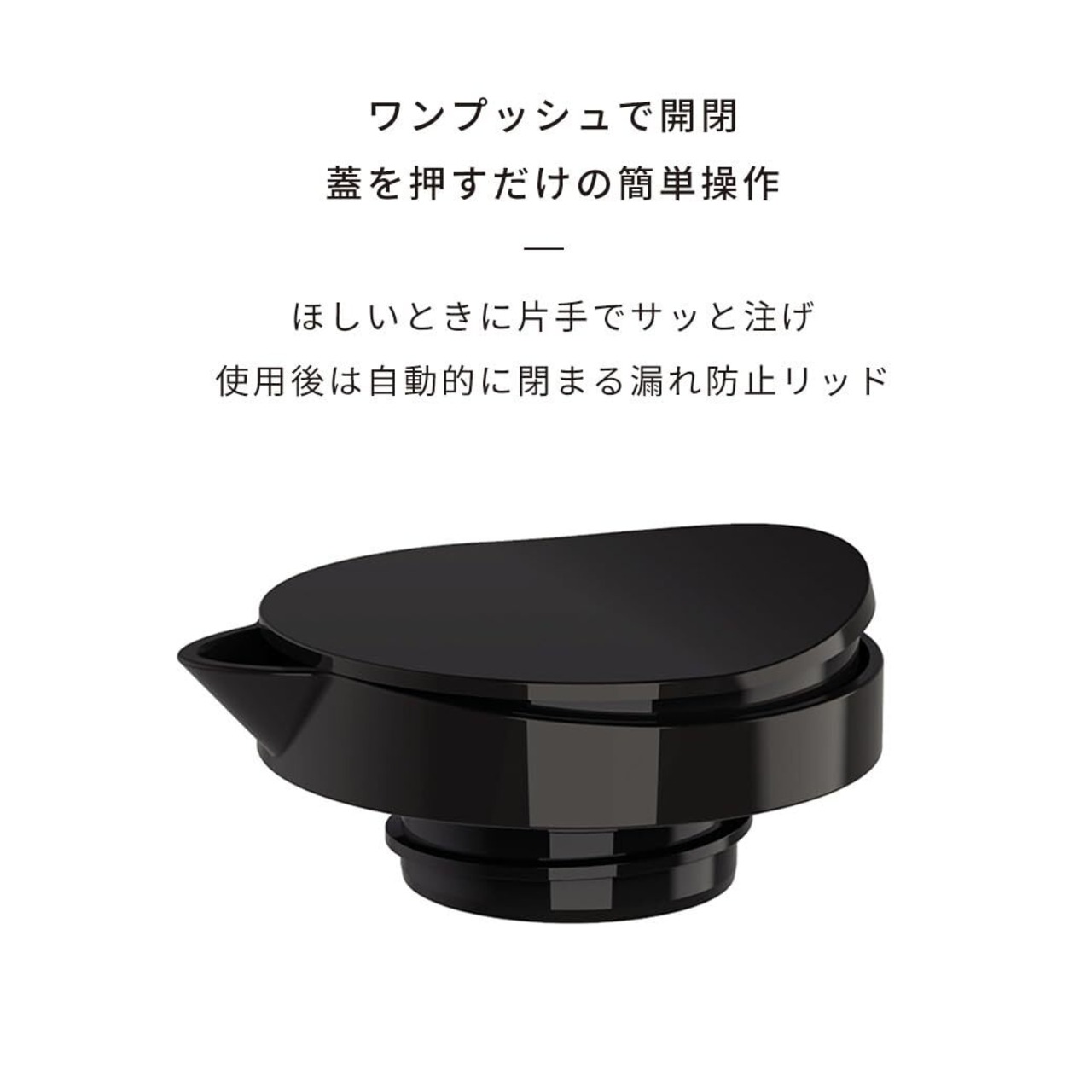 プッシュボタンで簡単に開き、使用後は自動的に閉まる漏れ防止リッド。