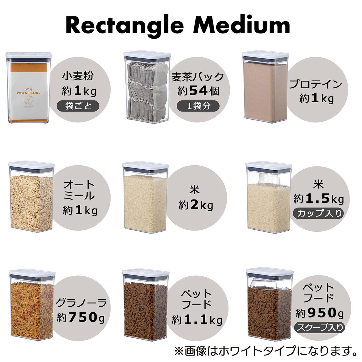 レクタングル ミディアム は、 グラノーラ 500gが余裕をもって入ります。※実測値ですが、食材のメーカーや形状によって、適正容量は差異がでる場合がございます