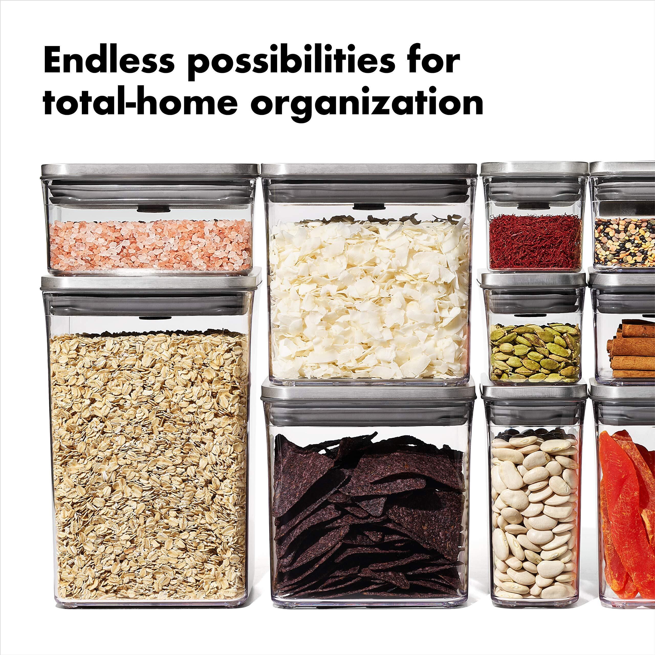 OXO ポップコンテナは、片手でボタンをプッシュするだけで簡単に開閉できる乾燥食品用 保存容器
