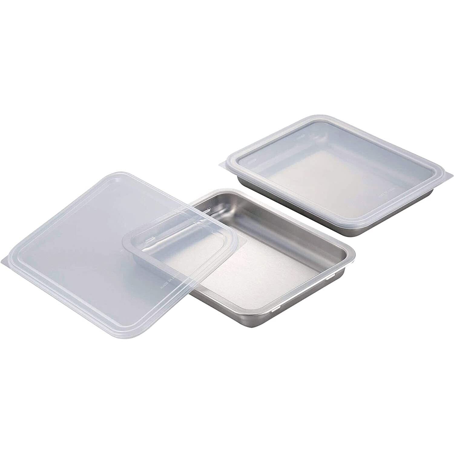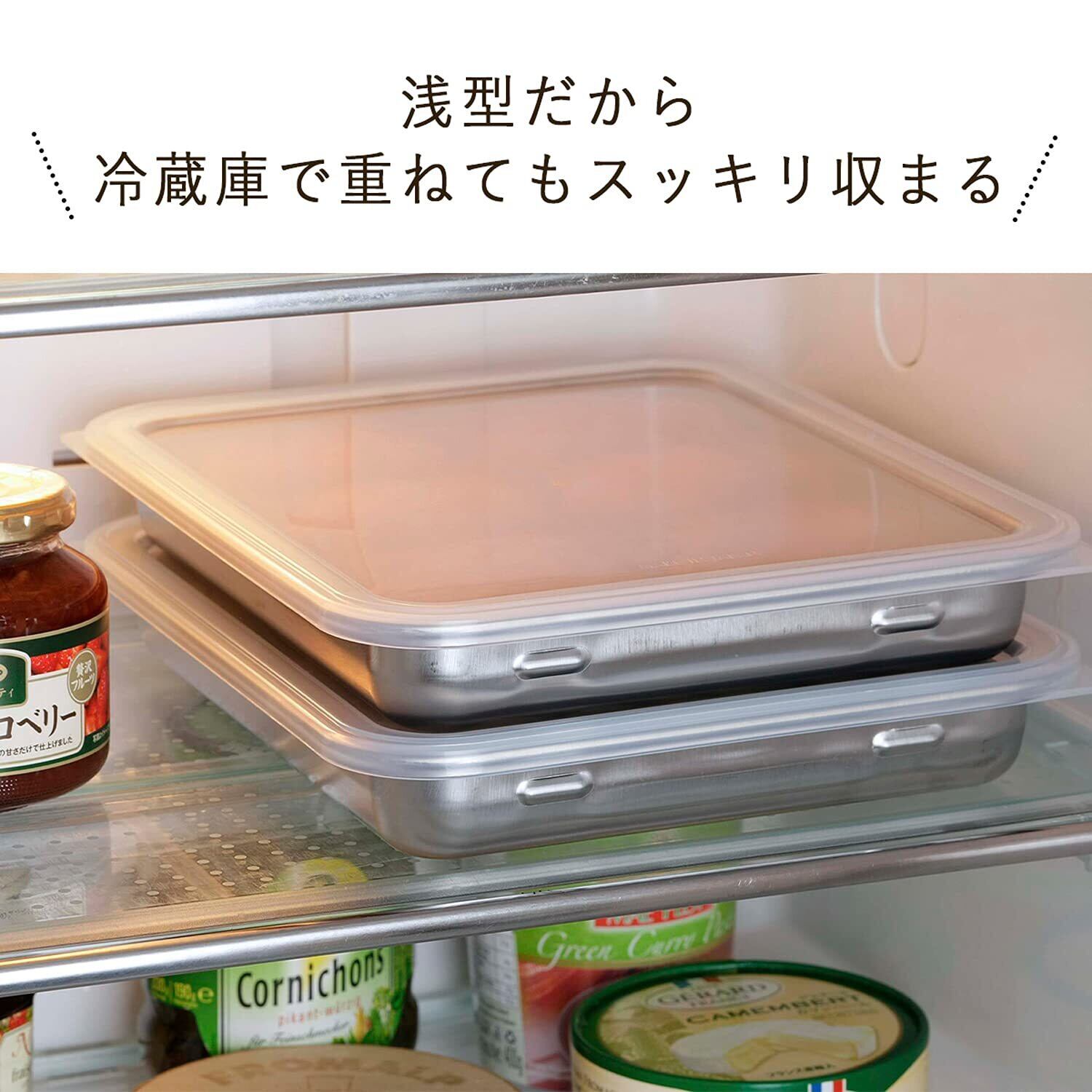 下村企販 保存容器 ワイド 2個組 【日本製】 下ごしらえに便利 サビにくい 一時保存 作り置き ぎょうざ ハンバーグ フタ付き 浅型 1L ステンレス 燕三条 40748