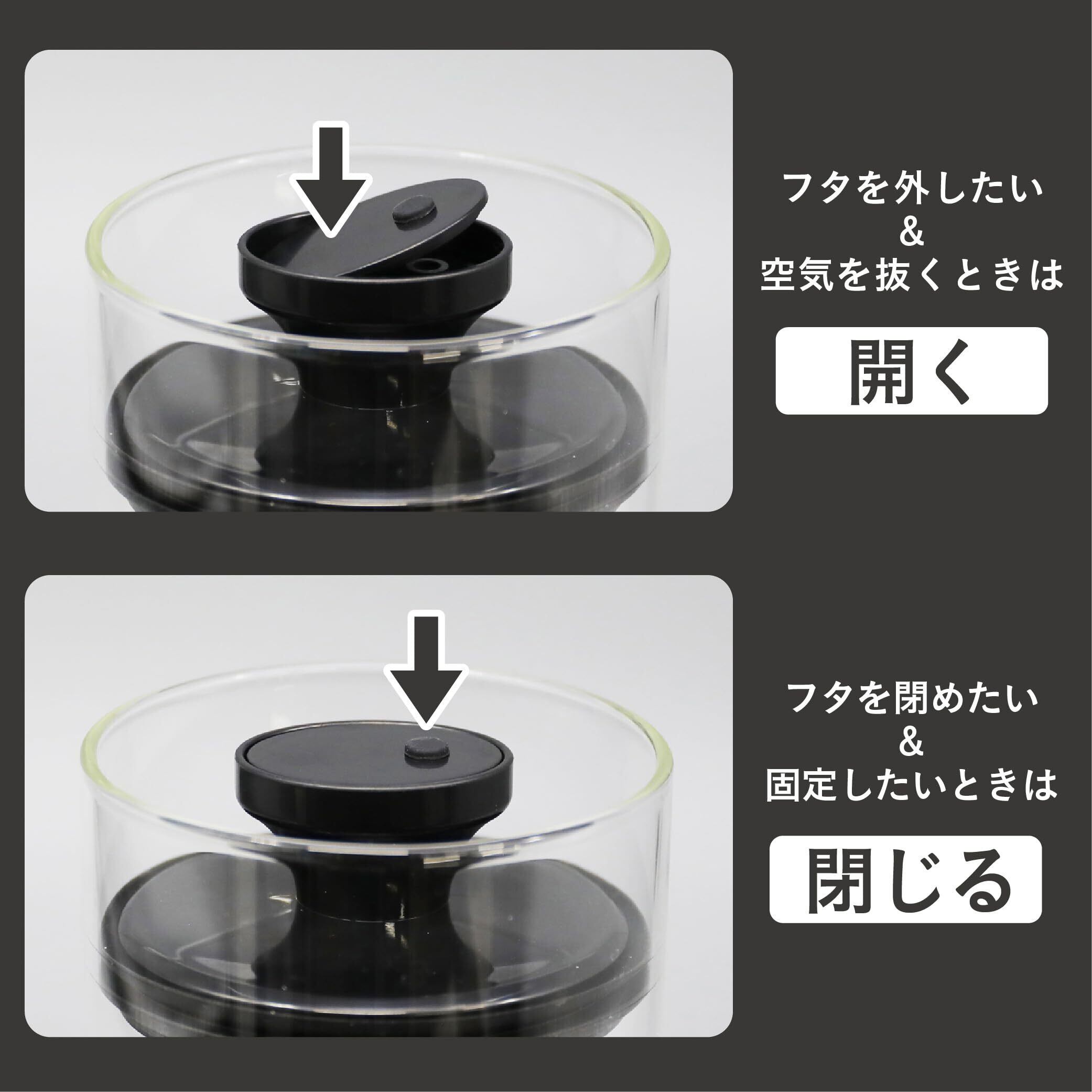 フタを押し込むだけで余分な空気を抜くことができる「atomico(アトミコ)耐熱ガラスキャニスター」