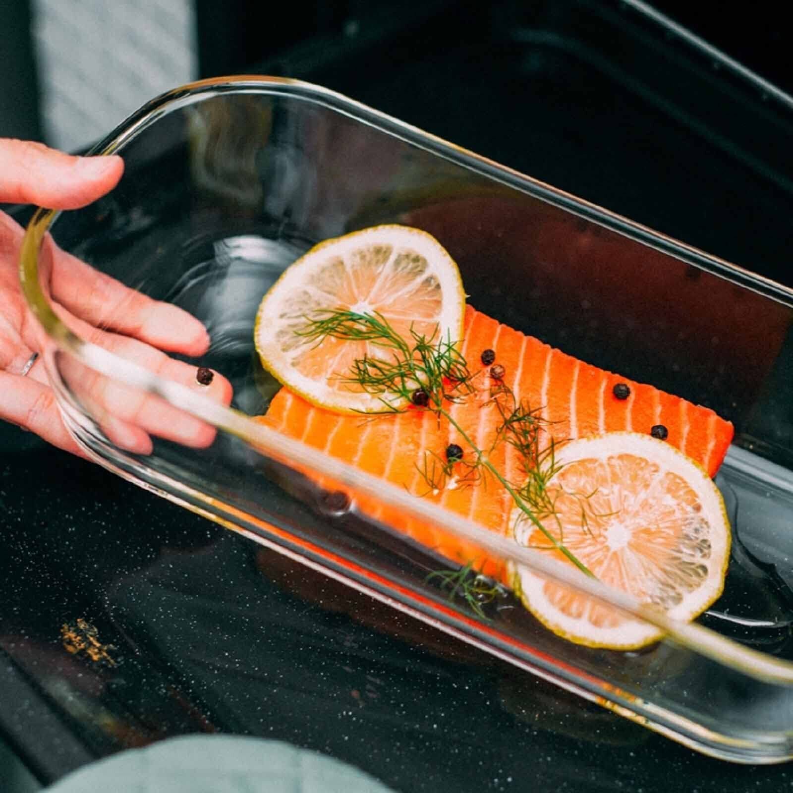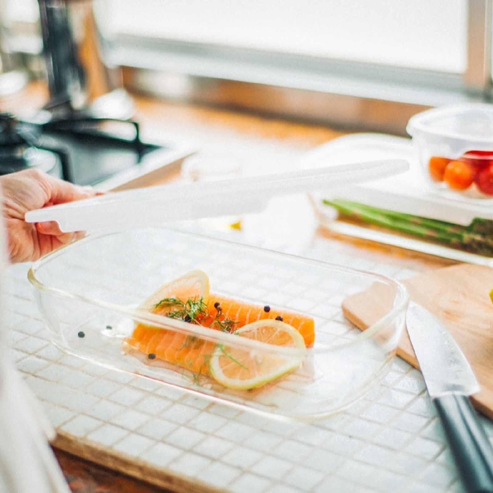 耐熱ガラスの保存容器なので、電子レンジ対応・フタを外してオーブンでも使える。より幅広い調理や保存におすすめ