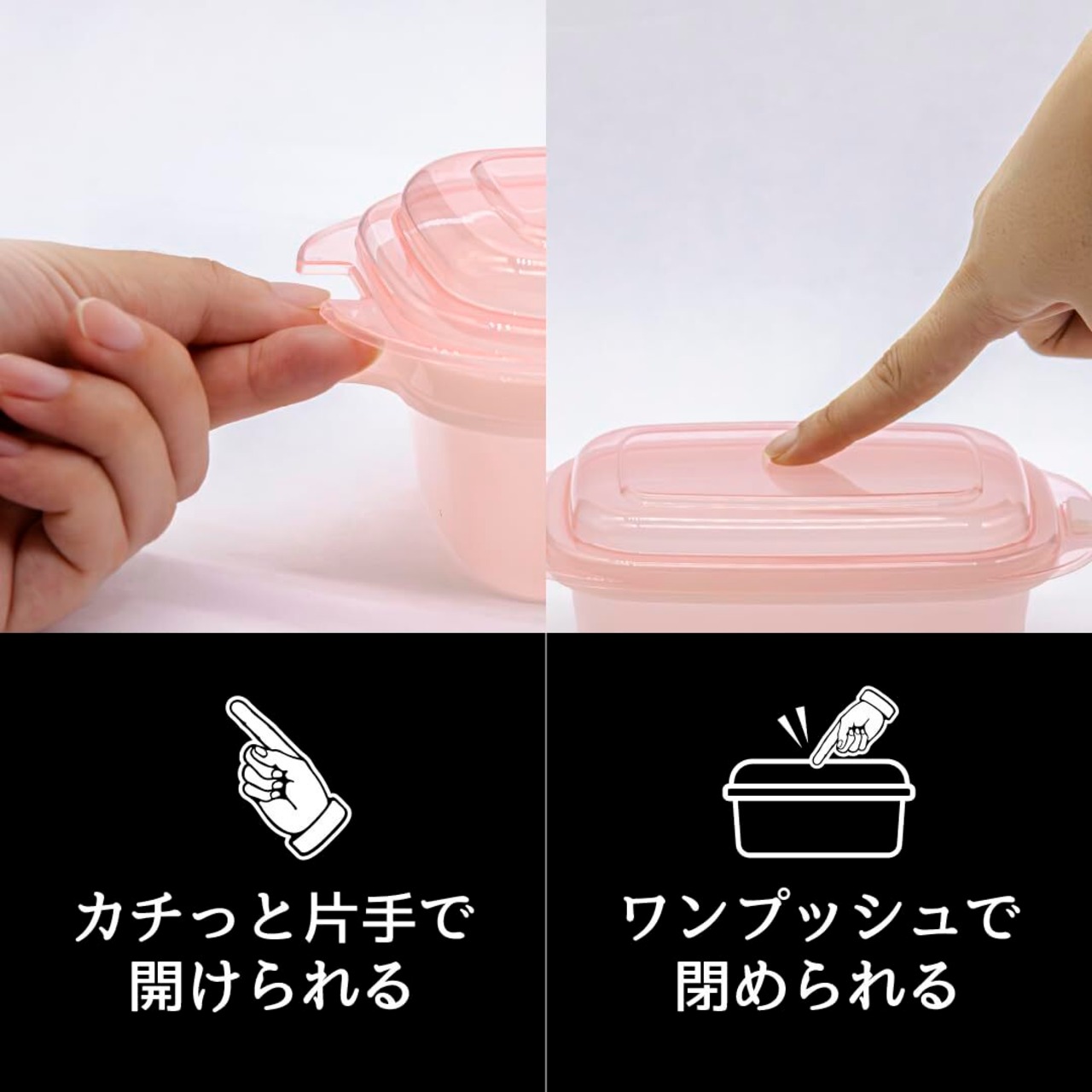 片手でカチッと開けられて、閉める時もフタをわんプッシュするだけで閉められるので、手が塞がりがちな台所作業時でも使いやすい。