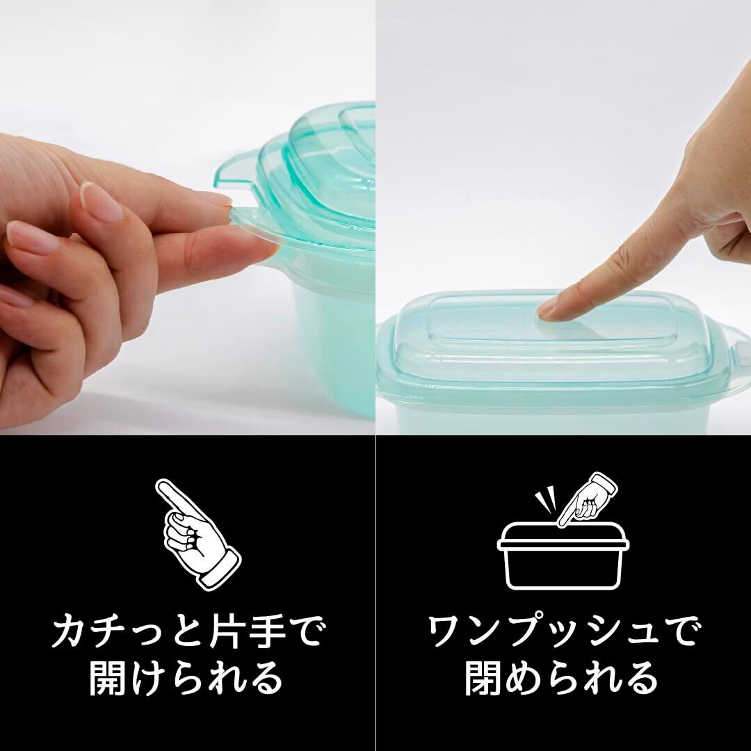 片手でカチッと開けられて、閉める時もフタをわんプッシュするだけで閉められるので、手が塞がりがちな台所作業時でも使いやすい。