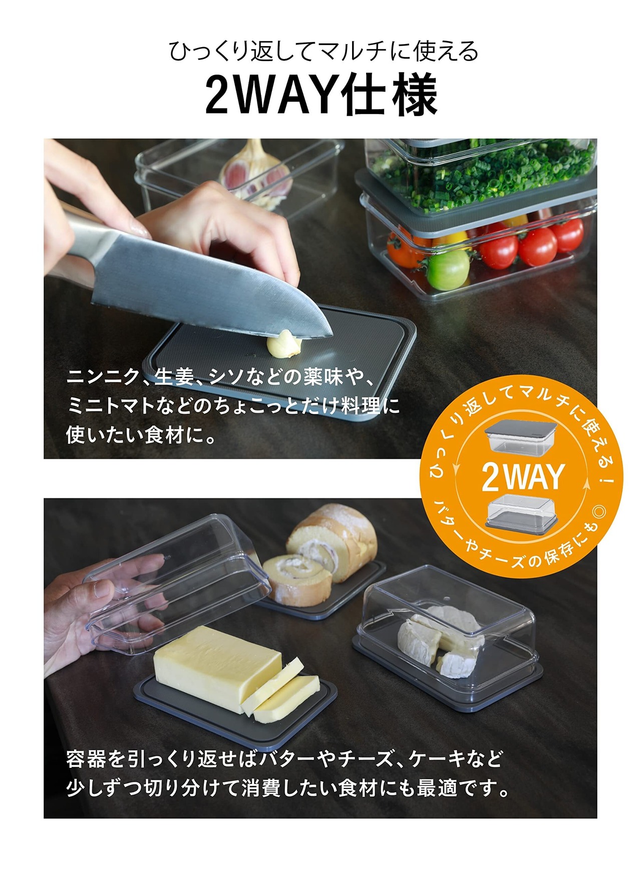 ニンニク、生姜、シソなどの薬味や、ミニトマトなど、ちょこっとだけ料理に使いたい。そんな時に便利な「蓋がまな板になる保存容器」