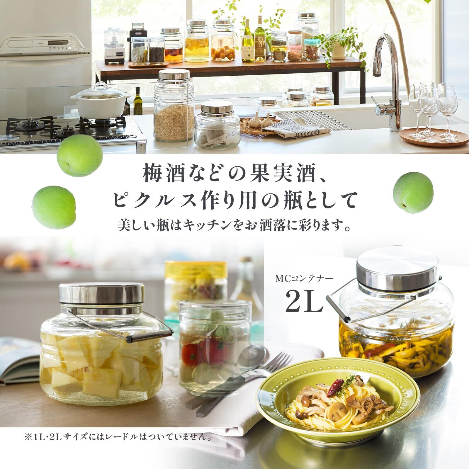 アデリア(ADERIA) 【 MCコンテナー2L 日本製 化粧箱入 814 】 梅酒瓶 保存容器 梅瓶 保存瓶 米びつ ステンレスキャップ ガラス瓶 ガラス キャニスター 密閉容器 調味料入 瓶 密閉 コーヒー豆