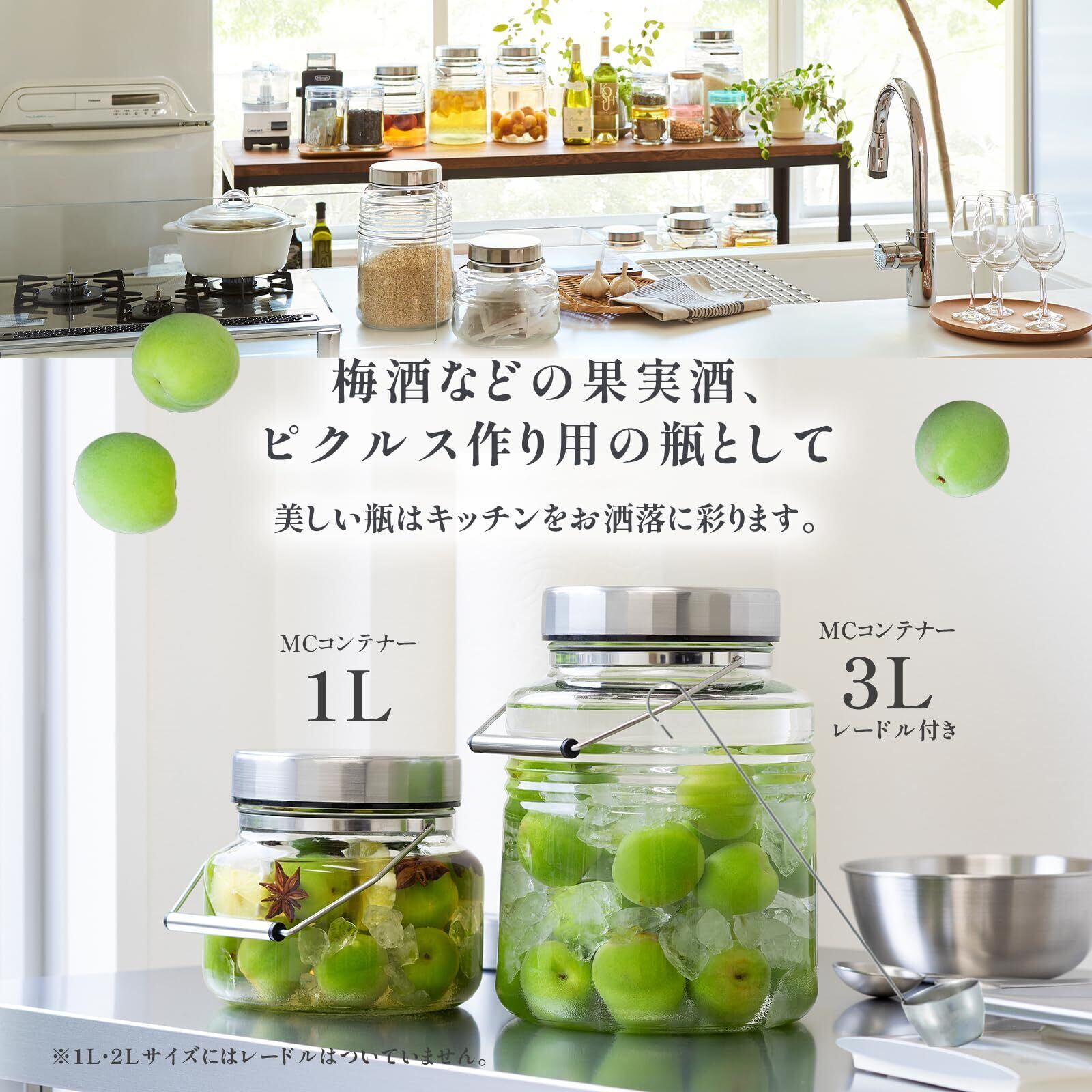 アデリア(ADERIA) 【 MCコンテナー1L 日本製 化粧箱入り 829 】 梅酒瓶 保存容器 梅瓶 保存瓶 米びつ ステンレスキャップ ガラス瓶 ガラス キャニスター 密閉容器 調味料入 瓶 密閉 コーヒー豆
