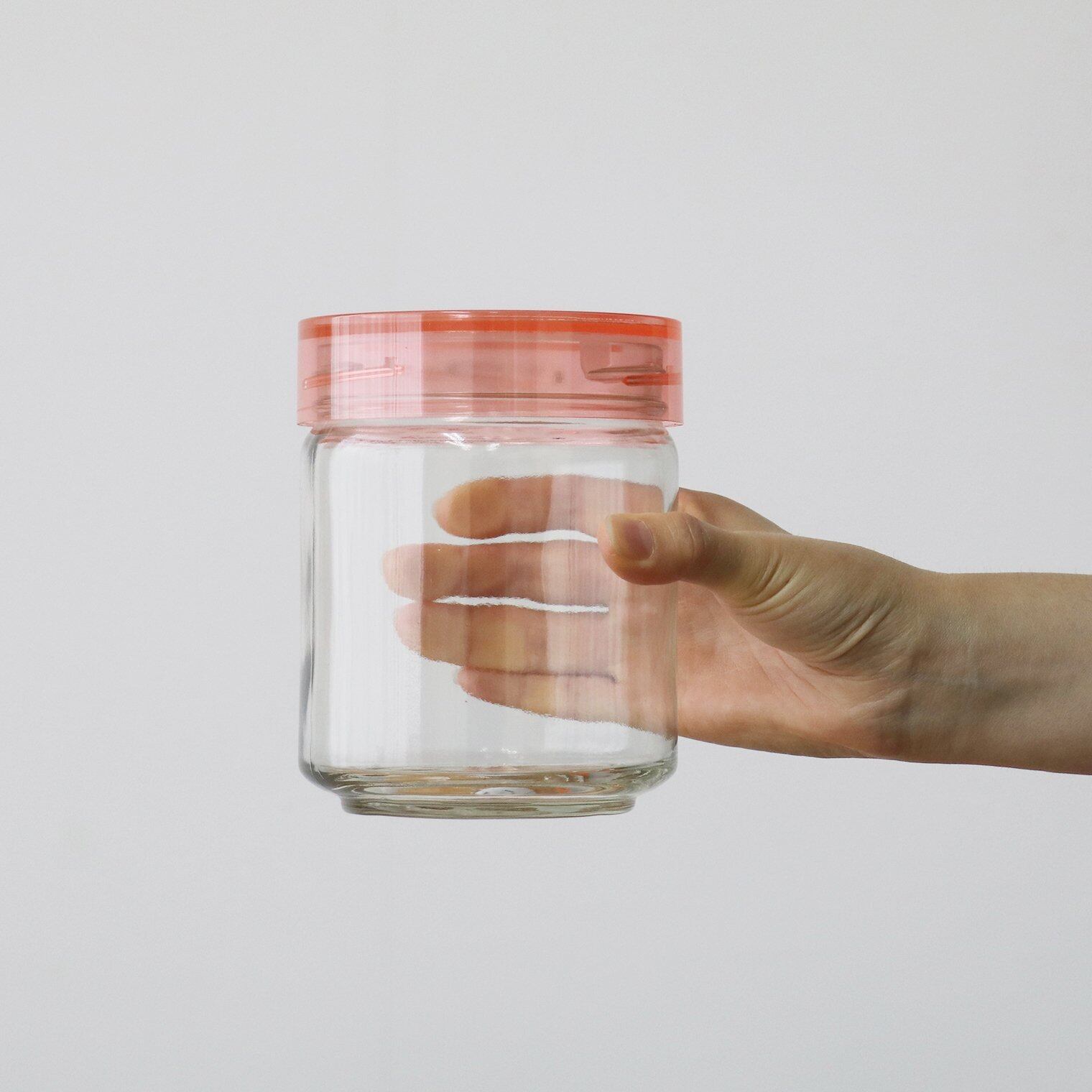 保存や小物整理に便利なネジフタ式のガラスびん。