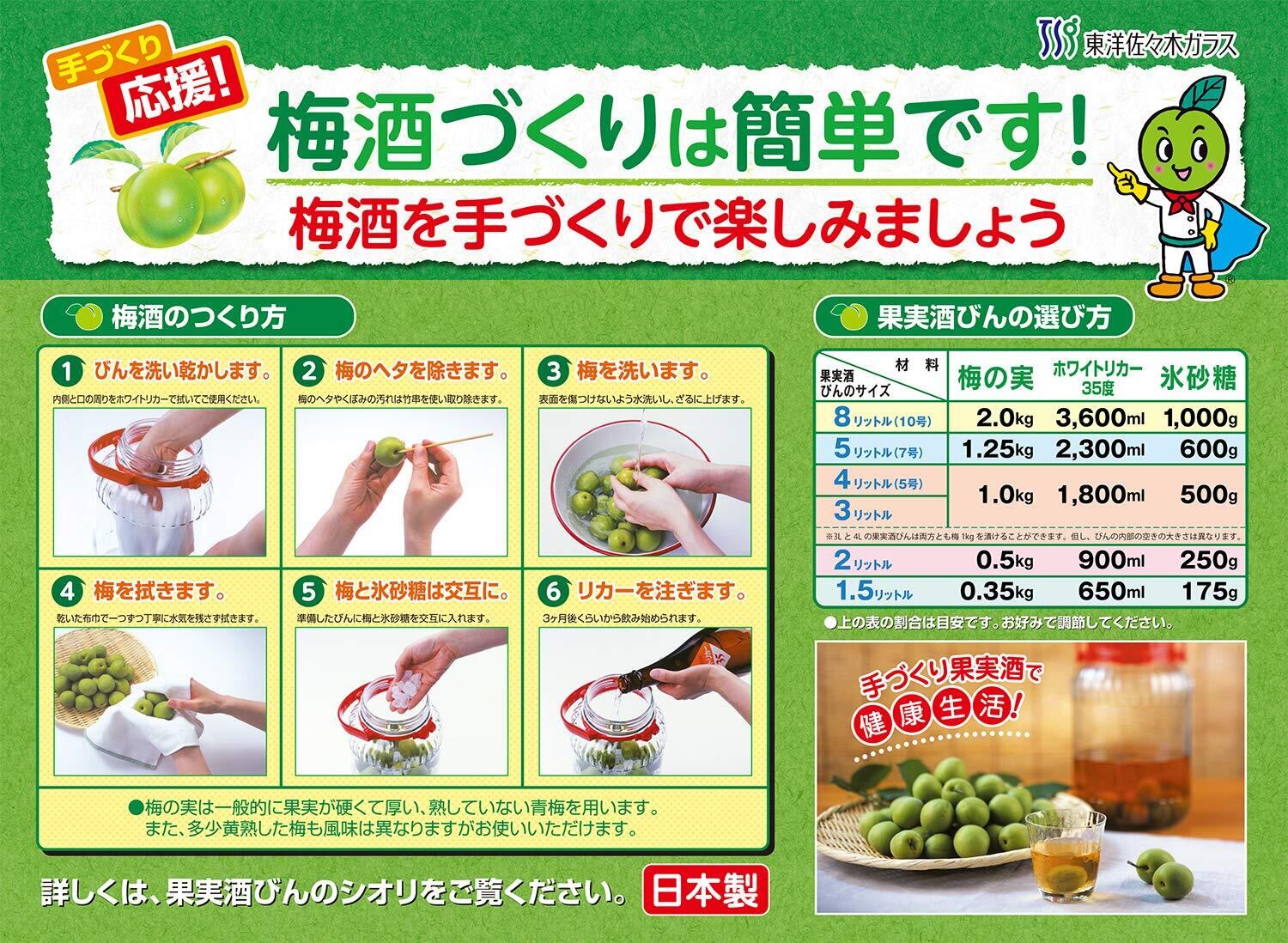 東洋佐々木ガラス 保存容器 果実酒びん 5リットル 7号 5000ml 日本製 梅びん 果実酒瓶 ガラス容器 保存瓶 梅酒 瓶 果実酒 漬物 ガラス I-71805-R-C-JAN