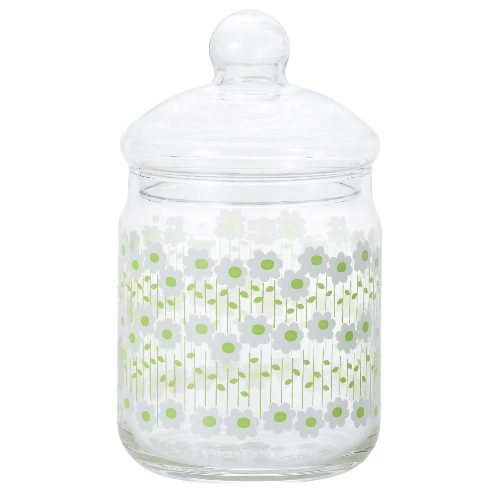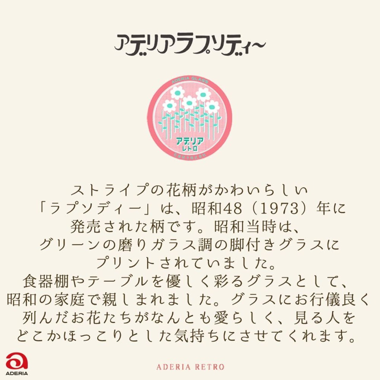 懐かしくて新しい。昭和のカワイイを詰め込んだレトロな器「アデリアレトロ」シリーズ。当時を知る人には懐かしく、知らない人にとってはむしろ新鮮にもうつるガラスのボンボン入れ。チャームポイントのぷっくりした持ち手は、昭和当時に製造していたボンボン入れのデザインを再現したものです。ちなみにボンボンとは一口サイズのチョコレートやキャンディーのこと。昭和の家庭ではこのようなガラスの卓上保存容器は「ボンボン入れ」と呼ばれ親しまれていました。そのかわいらしい見た目から当時はお部屋を飾るインテリアとしても人気があったようです。どこまでも昭和の雰囲気にこだわり、パッケージもレトロでかわいいデザインに仕上げました。このように見た目はレトロですが、自社工場で徹底した品質管理のもとに製造されていますので安心してお使いいただけます。幅広い世代の方に喜んでいただけるプレゼントとしてもおすすめです。[ラプソディー]ストライプを描く花柄がかわいらしい「ラプソディー」は、昭和48(1973)年に発売された柄です。昭和当時はグリーンのすりガラス調の脚付きグラスにプリントされ、食器棚やテーブルをやさしく彩るグラスとして当時の人々に親しまれました。お行儀よく並んだお花たちが何とも愛らしく、見る人をどこかほっこりとした気持ちにさせてくれます。[サイズ](ポット容器680)約最大9.9(口径9)×高さ12.3cm、(フタ)約最大9.6×高さ6.9cm[容量]約680ml[素材・材質]ガラス[生産国]日本