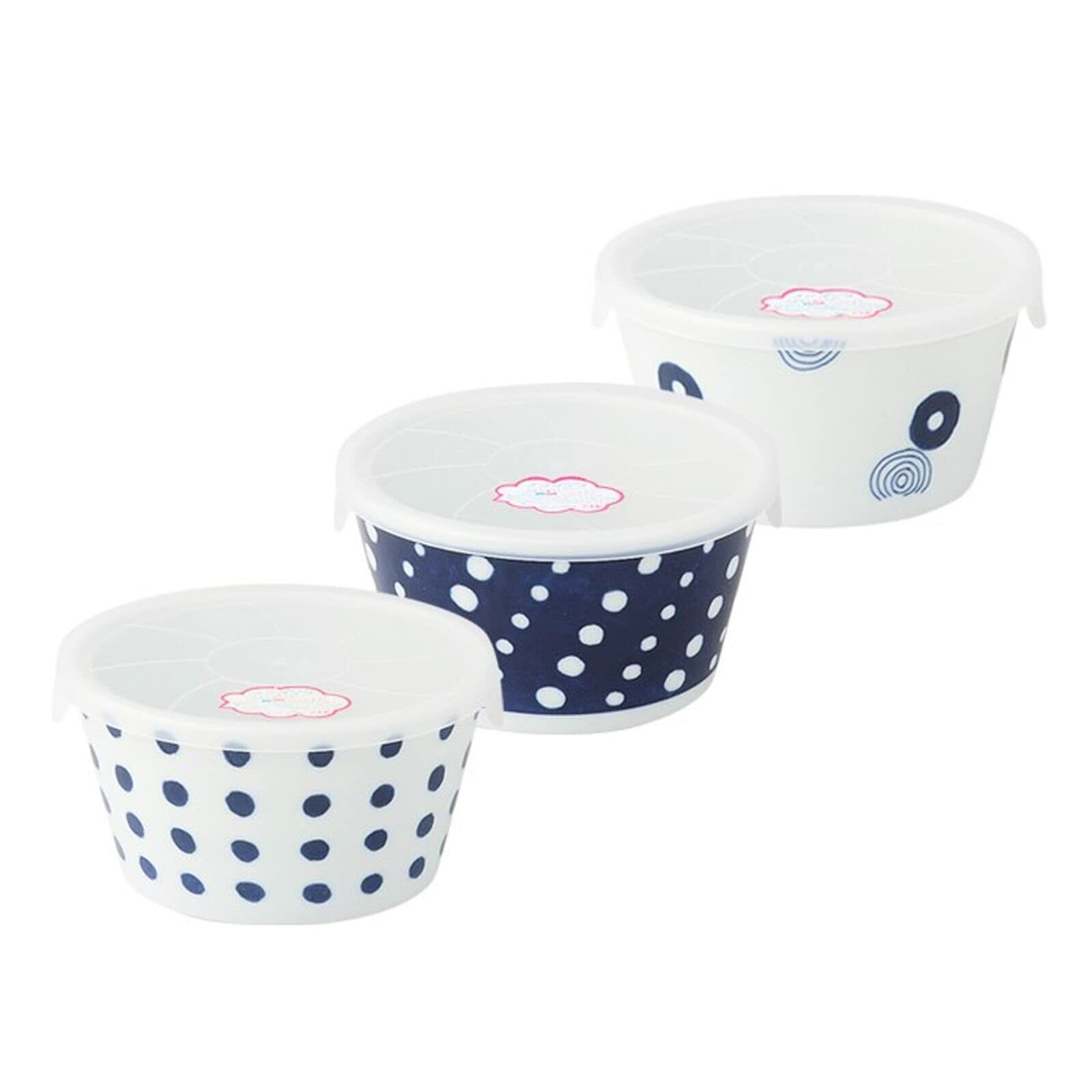 西海陶器 波佐見焼 インディゴジャパン 蓋付 レンジパック キャニスター 直径11×6cm 3柄 食器セット (ギフト箱入) 電子レンジ 食洗機対応 蓋付き食器 ふた付 保存容器 中鉢 ノンラップ 和食器 引越し祝い 日本製 14137 | kireimode