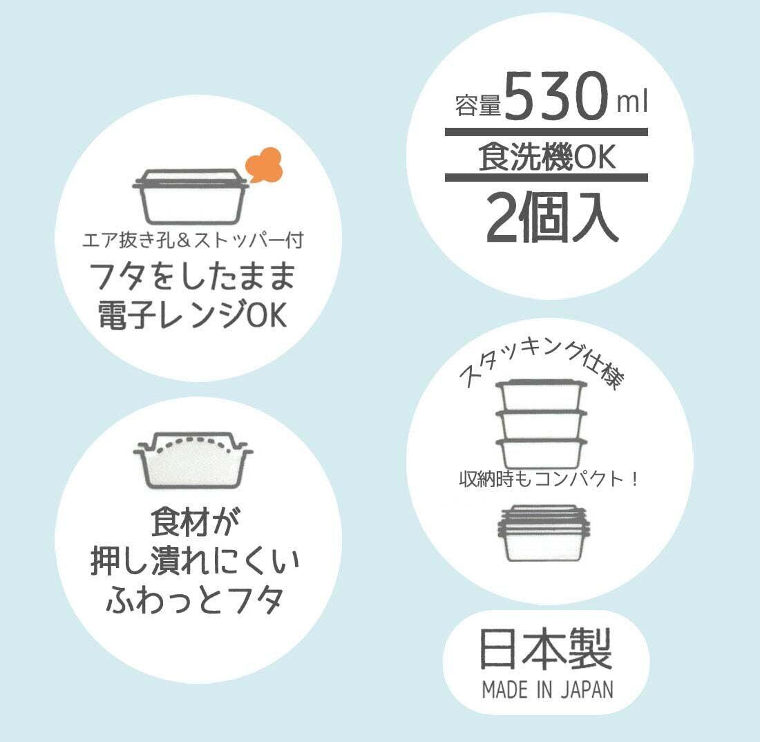 スケーター (Skater) 溝がなく洗いやすい フタをしたままレンジで使える 保存容器 うさまる 530ml × 2個セット 日本製 FCNN5W-A