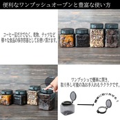 コーヒー豆、ナッツ類、粉類、お菓子などの保存が可能。<コーヒー豆・粉が入る目安>コーヒー豆約270g、コーヒー粉約300g