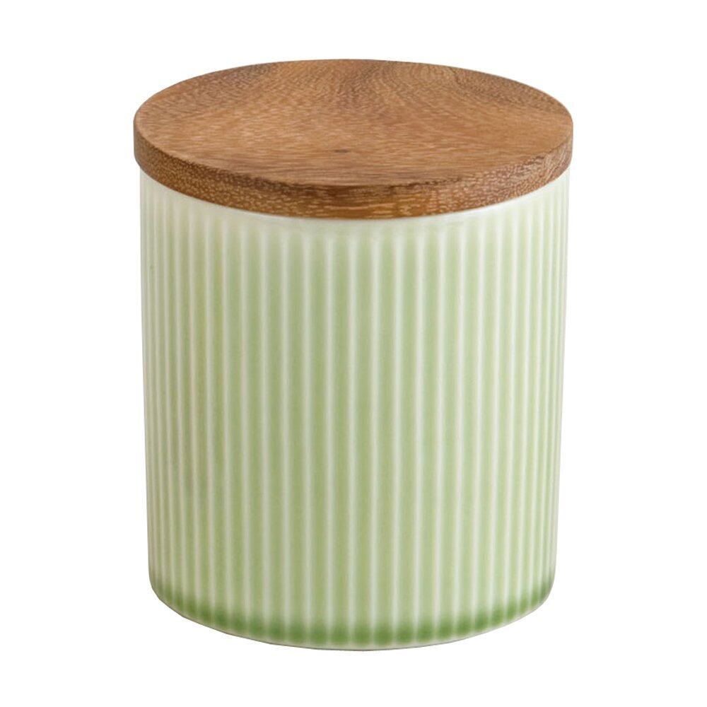 木蓋と陶器の組み合わせがナチュラルで優しいキャニスター