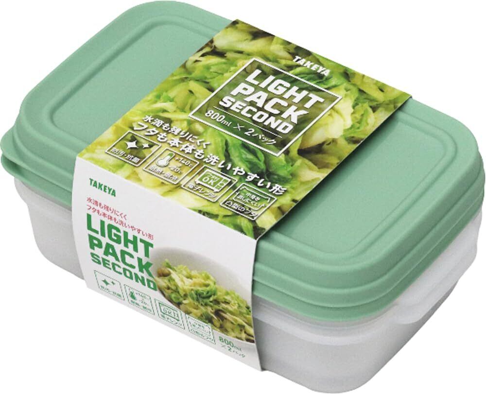 タケヤ化学工業 TAKEYA ライトパック セカンド 保存容器 800ml 2点セット グリーン 電子レンジOK 耐熱温度140度 スッキリ収納 防汚・抗菌加工 電子レンジOK