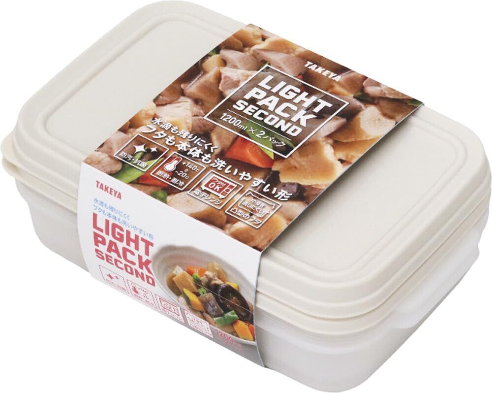タケヤ化学工業 TAKEYA ライトパック セカンド 保存容器 1200ml 2点セット グレージュ 電子レンジOK 耐熱温度140度 スッキリ収納 防汚・抗菌加工 電子レンジOK