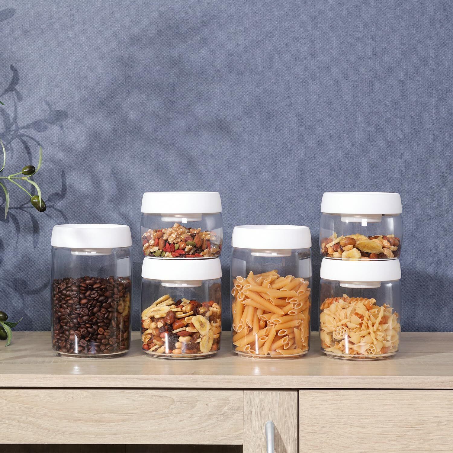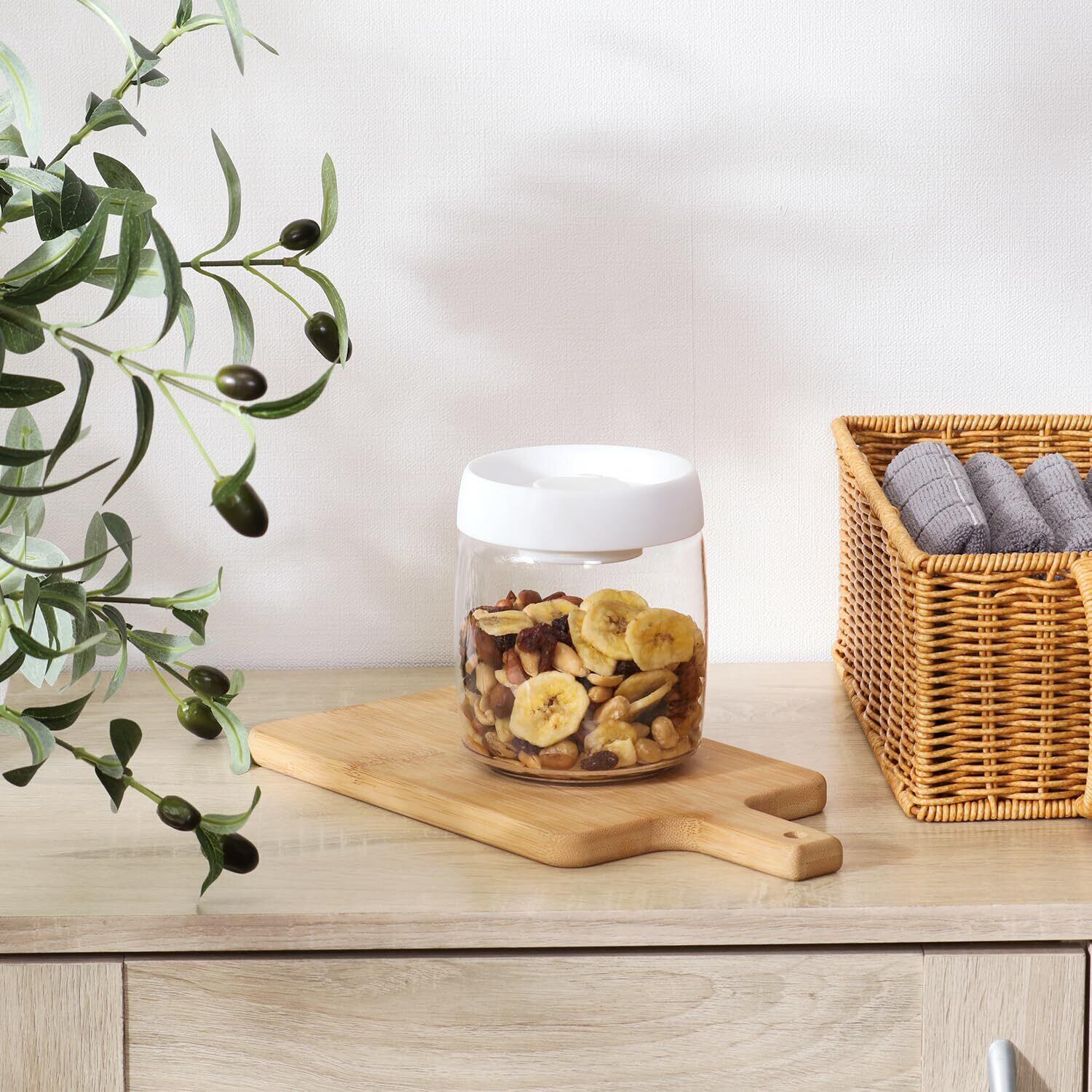 不二貿易 空気が抜けるキャニスター 800ml 幅10.9×奥行10.9×高さ13cm ホワイト保存容器 密閉 真空 40698