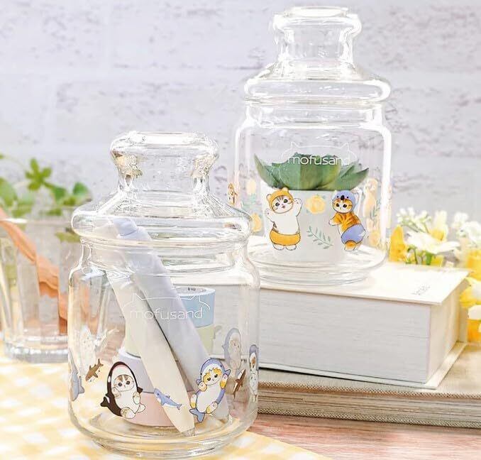 マリモクラフト(Marimocraft)ガラスキャニスターさめたちMOFUSAND, サイズ:約直径90×H145mm, 4994209097090
