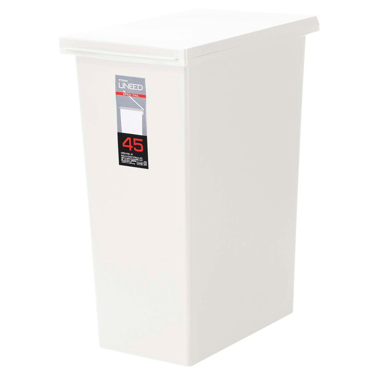 新輝合成 トンボ ユニード ゴミ箱 オープンペール スリム 袋止め付き 45リットル ホワイト 幅26.5×奥行44×高さ56cm 蓋付き 分別 日本製