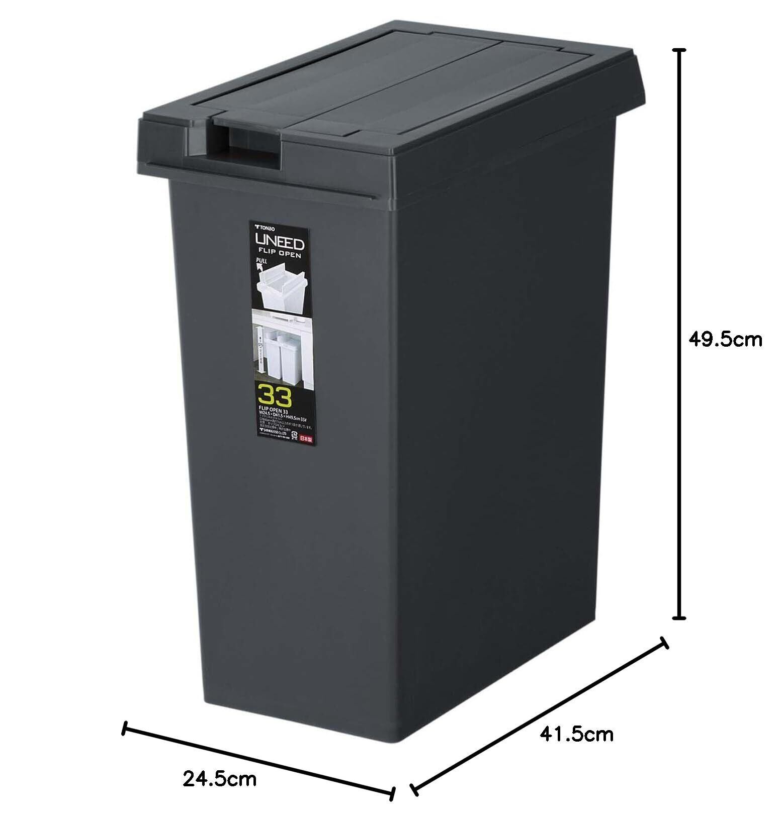 新輝合成 トンボ ユニード ゴミ箱 フリップオープン 棚下でもつかいやすい 手動でサッと簡単に開く キッチン 33リットル チャコールブラック 幅24.5×奥行41.5×高さ49.5cm 蓋付き 日本製