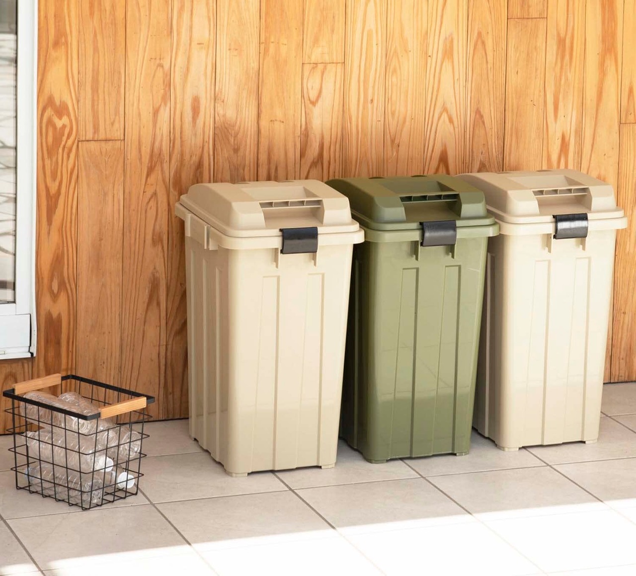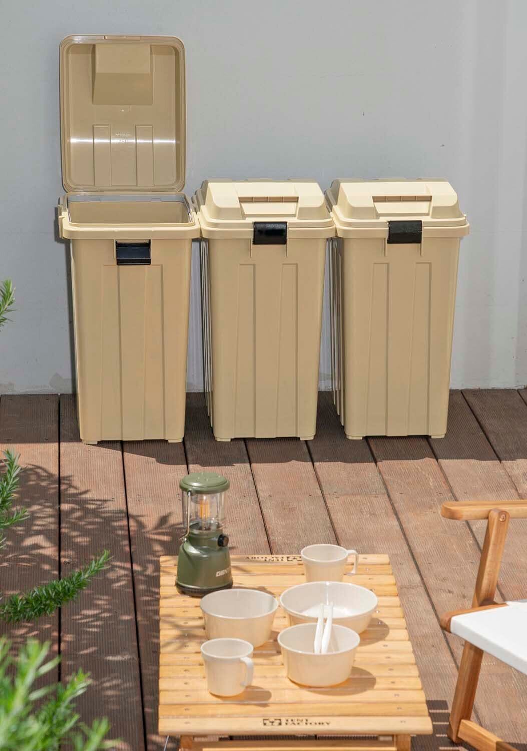 新輝合成 トンボ ゴミ箱 連結可能 ハンドル付 45リットル カーキ 幅33.5×奥行41.5×高さ60.5cm 蓋付き 分別 丈夫 屋外 ベランダ 大きい アウトドア 日本製 | kireimode