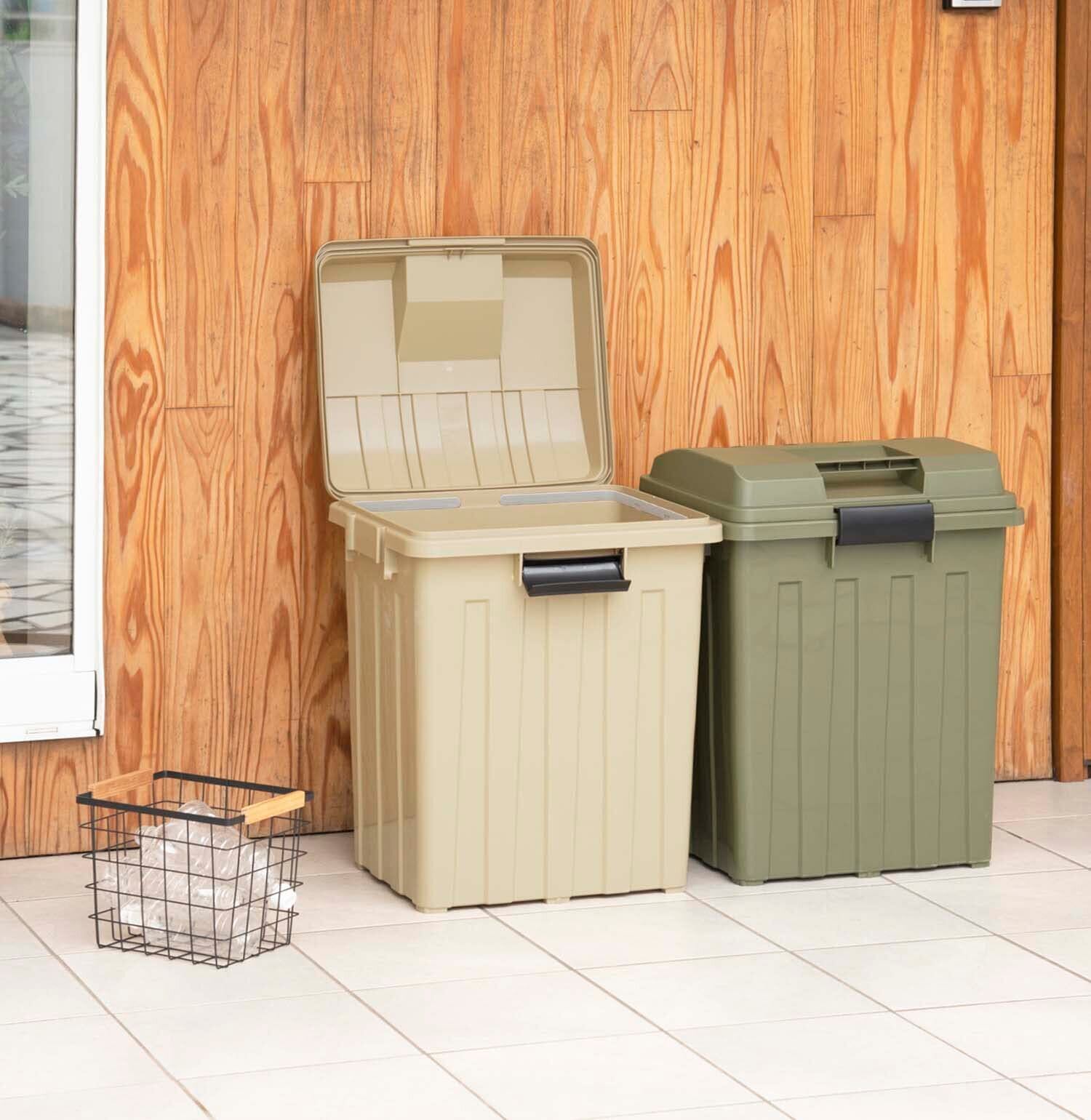 新輝合成 トンボ ゴミ箱 連結可能 ハンドル付 70リットル カーキ 幅49×奥行41.5×高さ62cm 蓋付き 分別 丈夫 屋外 ベランダ 大きい アウトドア 日本製