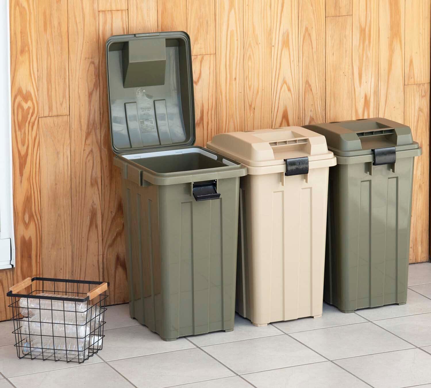 新輝合成 トンボ ゴミ箱 連結可能 45リットル カーキグリーン 幅33.5×奥行41.5×高さ60.5cm 蓋付き 分別 丈夫 屋外 ベランダ 大きい アウトドア 日本製