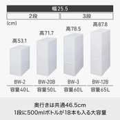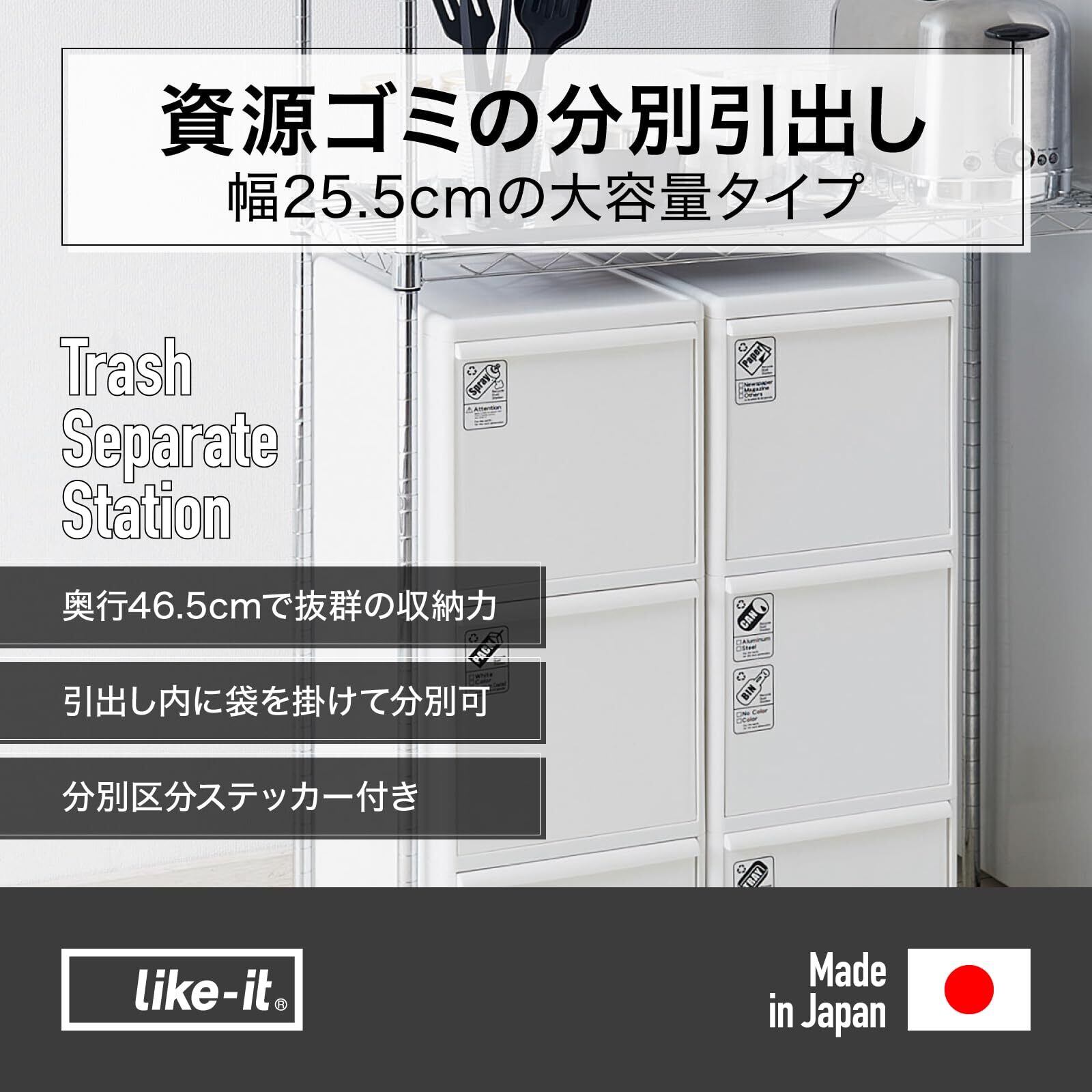 ライクイット (like-it) ゴミ箱 縦型 分別引出しステーション 3段 ワイド 約60リットル (20リットル×3段) キャスター付 ホワイト 約幅25.5x奥46.5x高93.5cm BW-3C 引出し分別ペール 大容量 多分別 ダストボックス