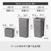 スリムな設計で容量たっぷり。開口部分が広く捨てやすいゴミ箱。袋クリップホール構造でゴミ袋の設置楽々。スリット構造でダスト内分別(2種類まで)が可能。