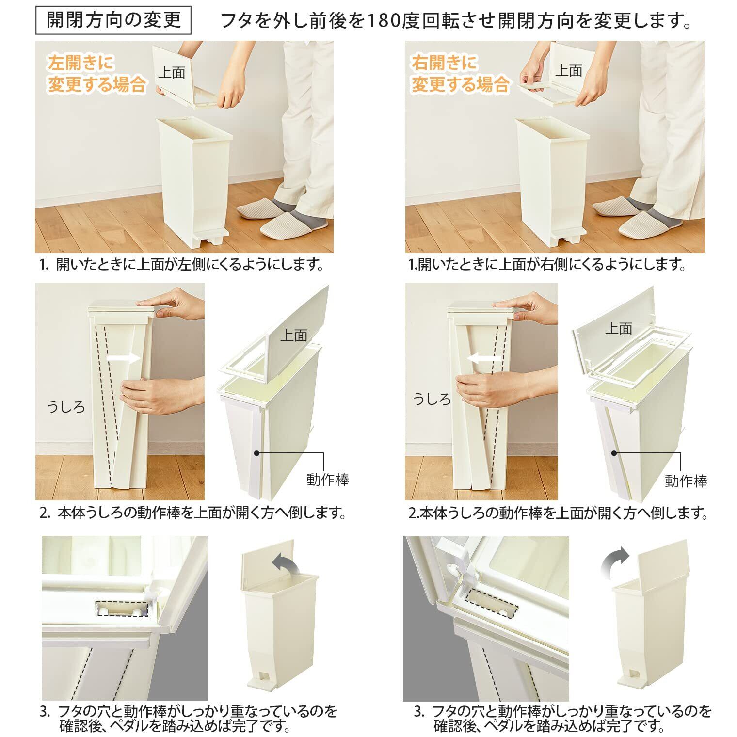 狭い場所に置けるスリムなペダルダストボックス。