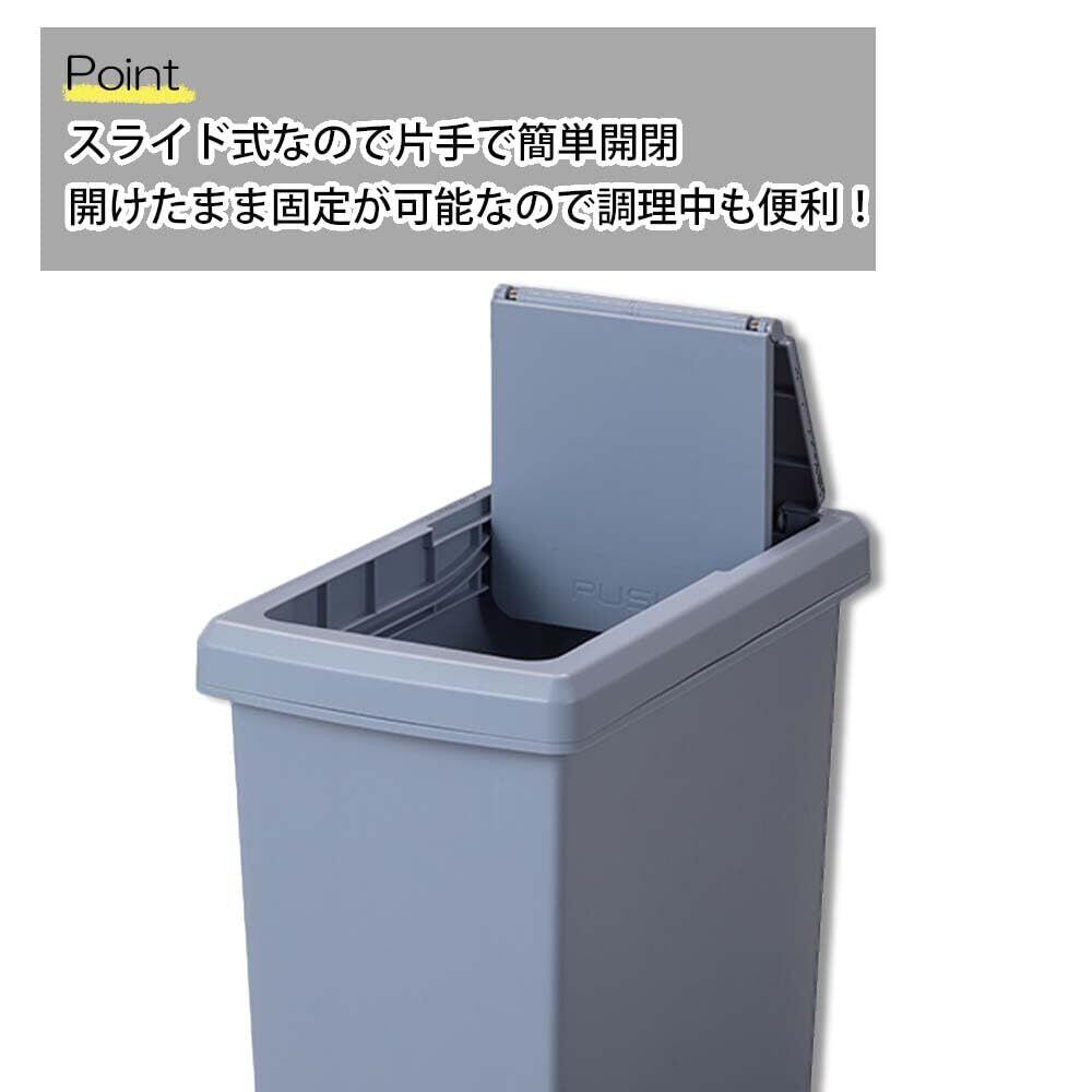 見た目もスッキリ!フタを上から押すとスライドして開くタイプのゴミ箱(20L)です。