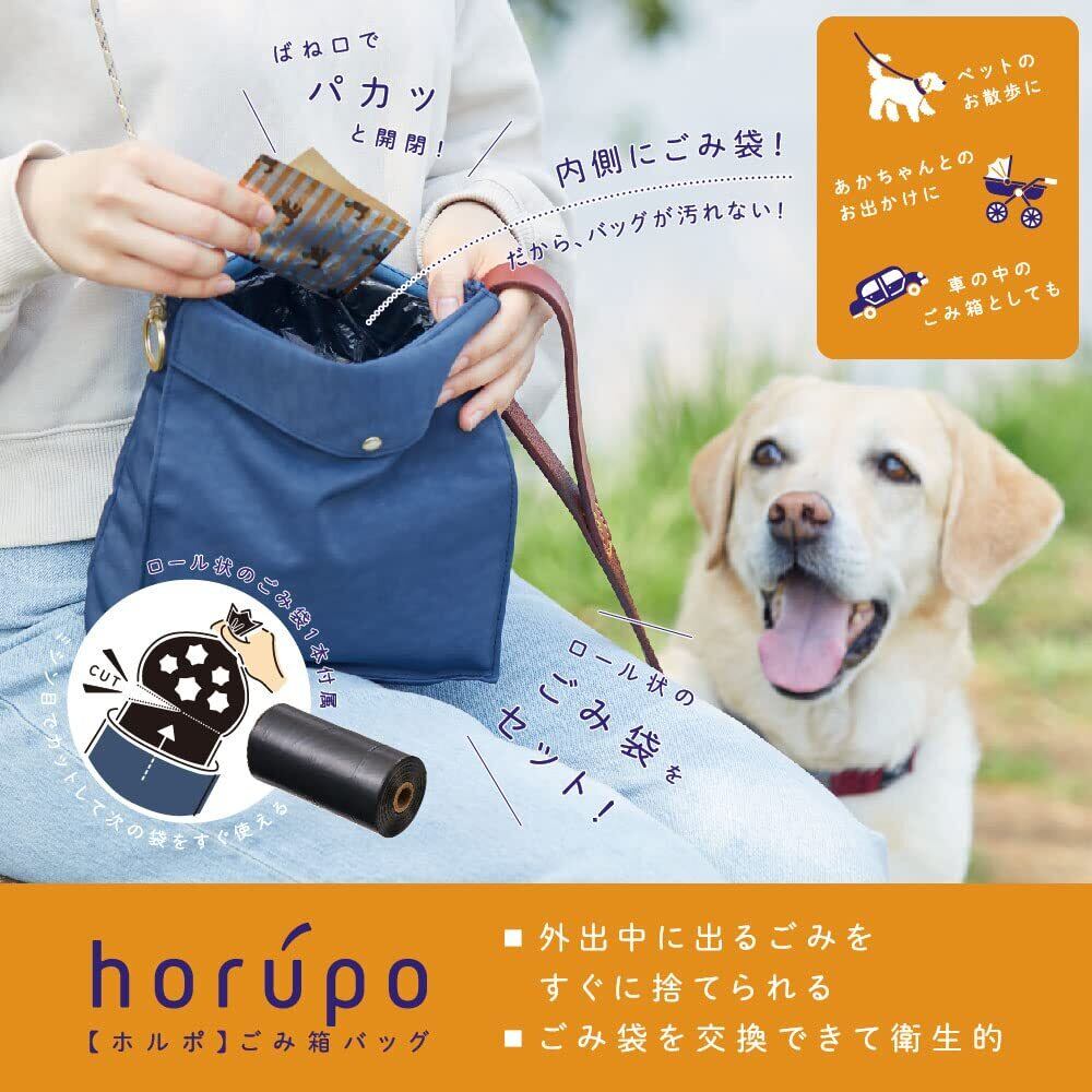 ばね口をパカッと開いてごみをポイッ。外出中に出たごみをすぐに捨てられる「ホルポ ごみ箱バッグ」。ごみ袋はロール状なので、ミシン目で切り取って簡単に次の袋に交換することができます。前面と背面にポケットがついているため、小物も一緒に持ち運ぶことができて便利です。