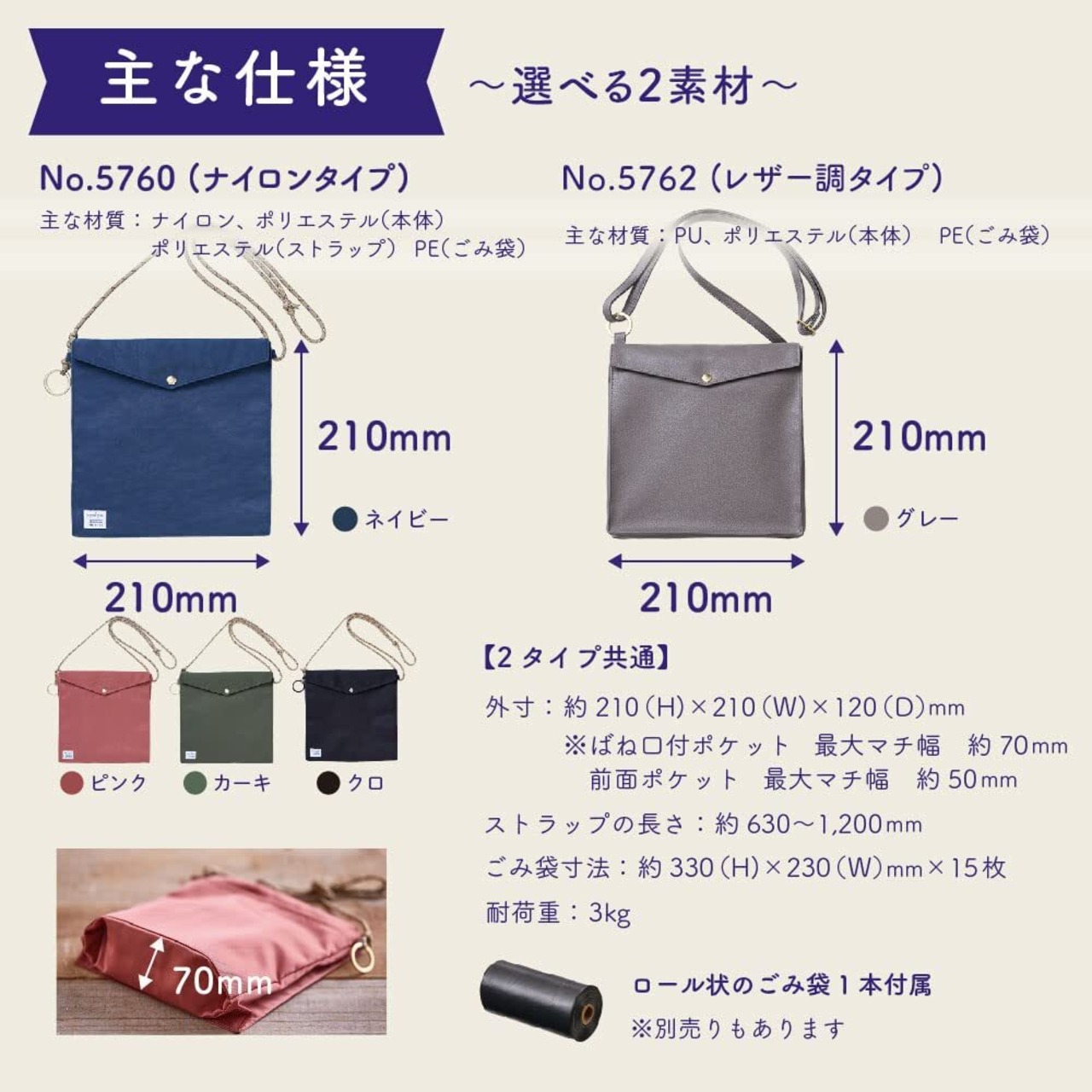 [主な材質] ナイロン、ポリエステル(本体)、ポリエステル(ストラップ) PE(ごみ袋)