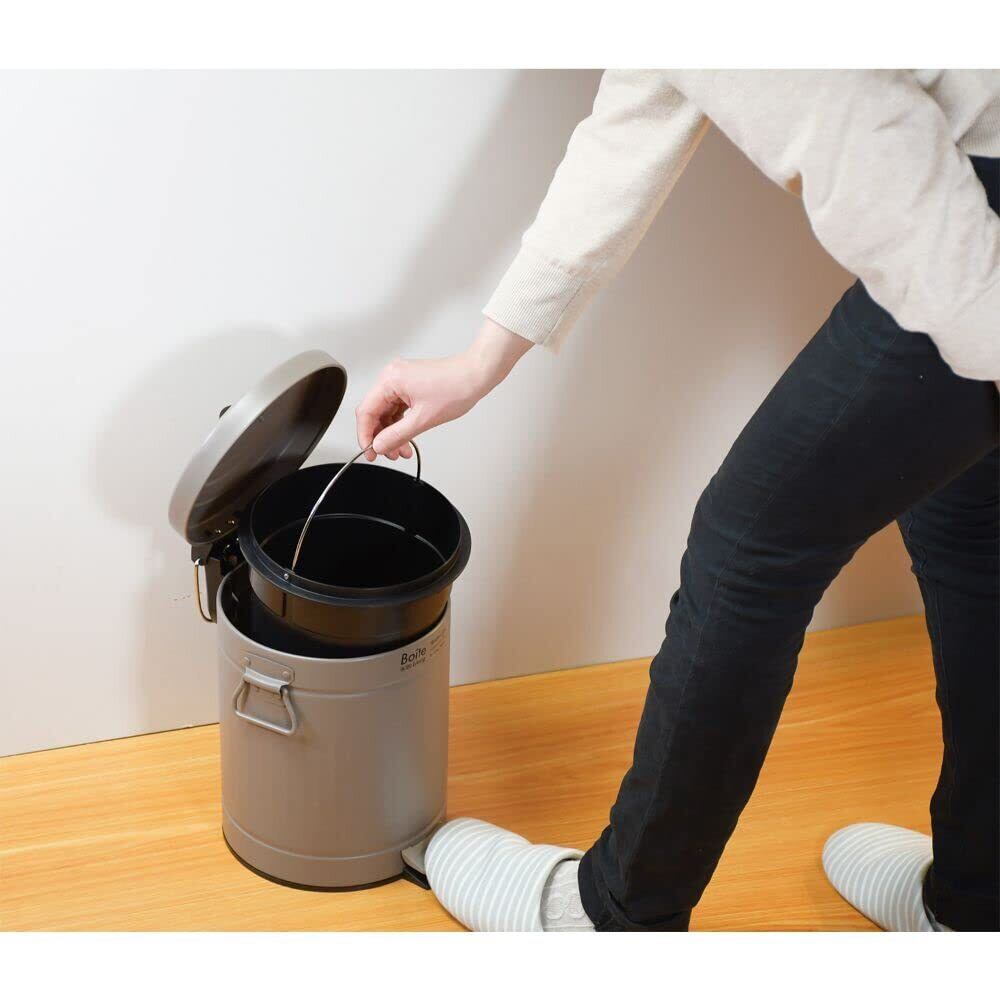 蓋がゆっくり閉まる静音設計のトラッシュカン。