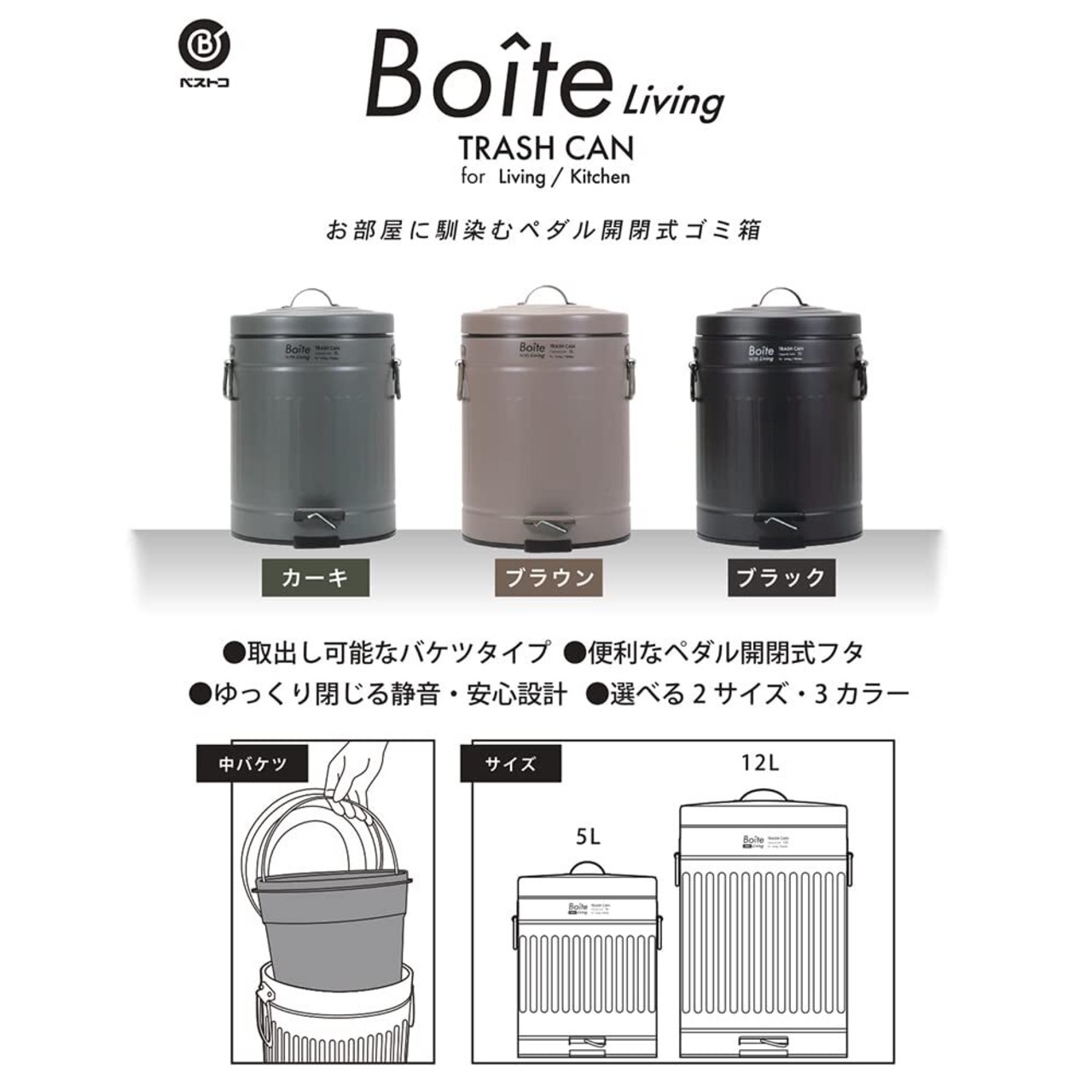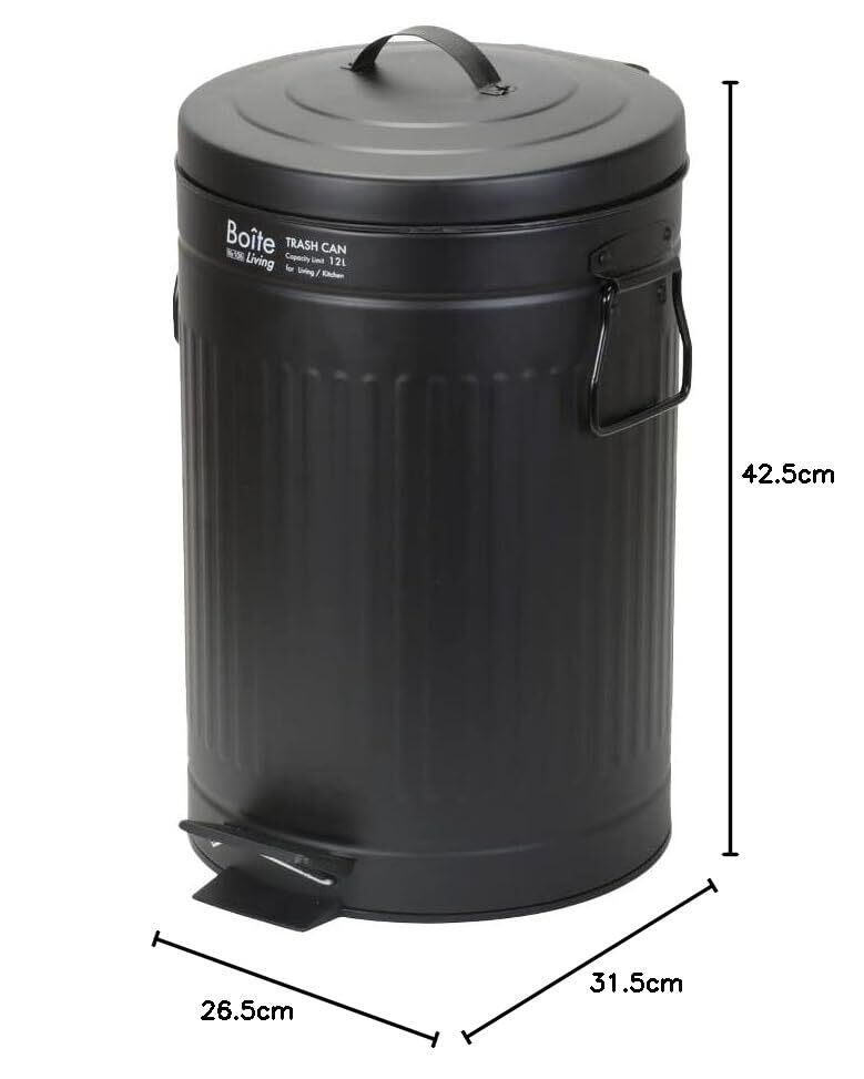 ベストコ ゴミ箱 ふた付き 12L ペダル式 静音設計 丸型 ブラック NQ-0196 Boite トラッシュカン