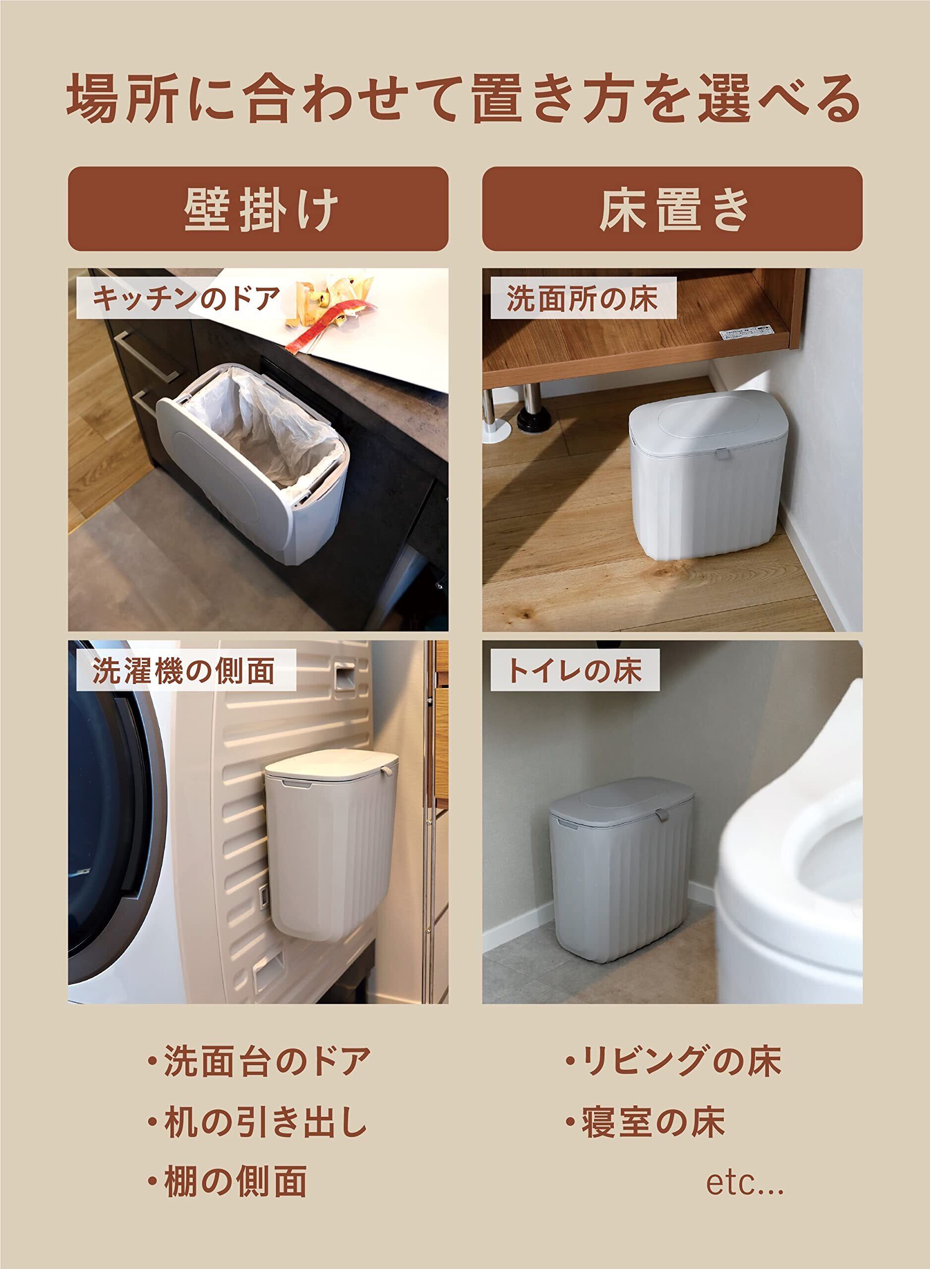 棚や扉に簡単に取り付けられる2WAY開閉式のゴミ箱「atomico ドアペール」床置きも可能なので、場所や用途を選ばず様々な使い方が出来ます。