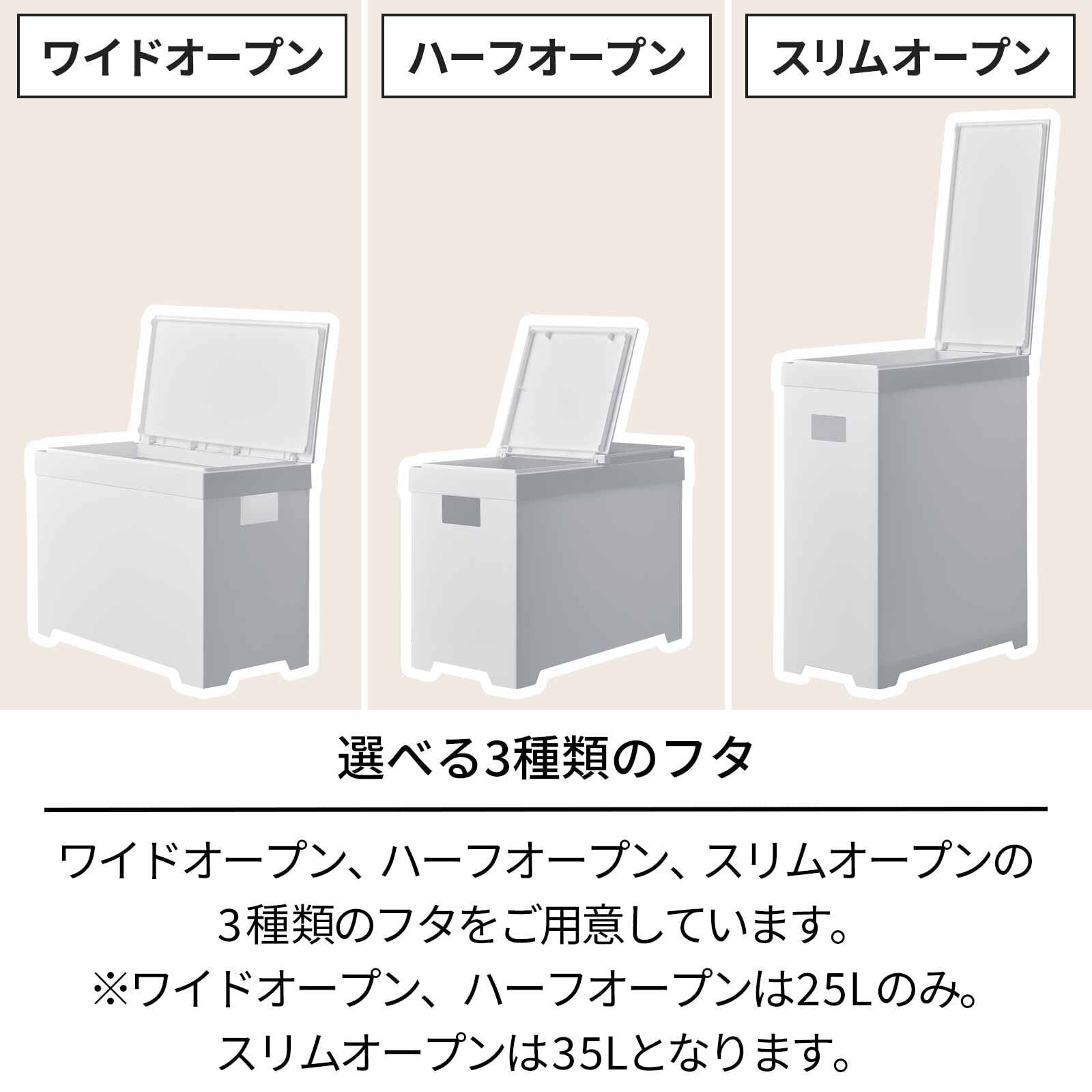 「選べるスタイル、選ばない場所」をコンセプトにしたシンプルなスタイリングのダストボックスが登場。お部屋でダストボックスとしてのご使用はもちろん、20Lサイズはシンク下のごみ入れとしてもおすすめです。