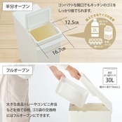 [対応ポリ袋]30L(横50×縦70cm)、<2分別時>15L持ち手付ポリ袋(横50×縦58cm以上)×2枚(持ち手の長さによっては装着できない場合があります)