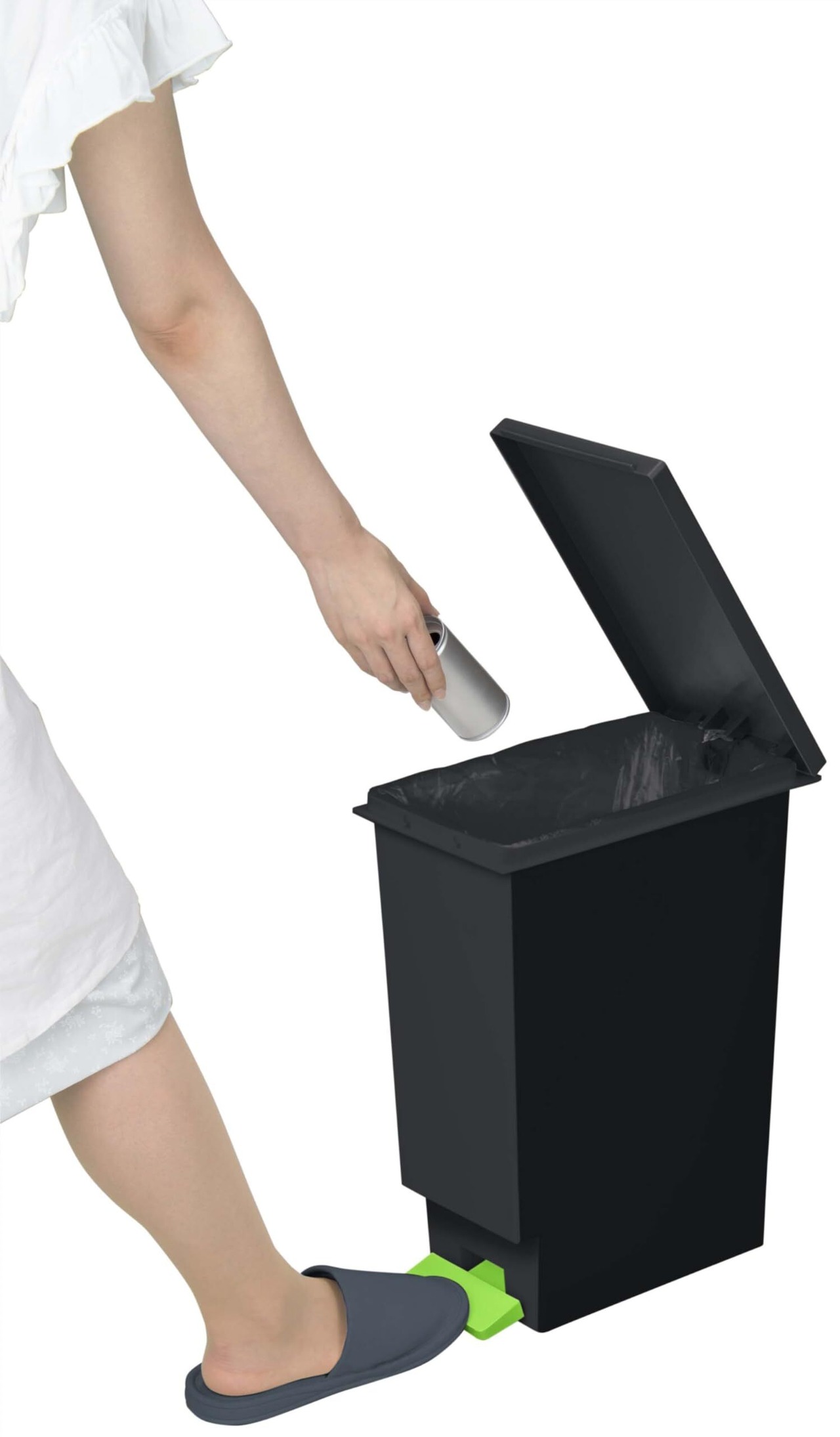 軽いペダルを踏むと蓋がサッと開きます。薄暗い部屋でもペダルが目立つカラーなのでごみが捨てやすい。