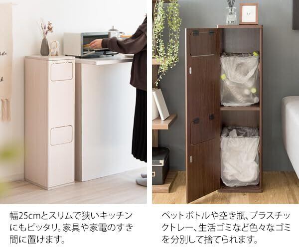 宮武製作所 2段プッシュダストボックス スリム2段タイプ 20Lx2対応 幅25x奥30x高さ96cm DB-960R (BR) ブラウン