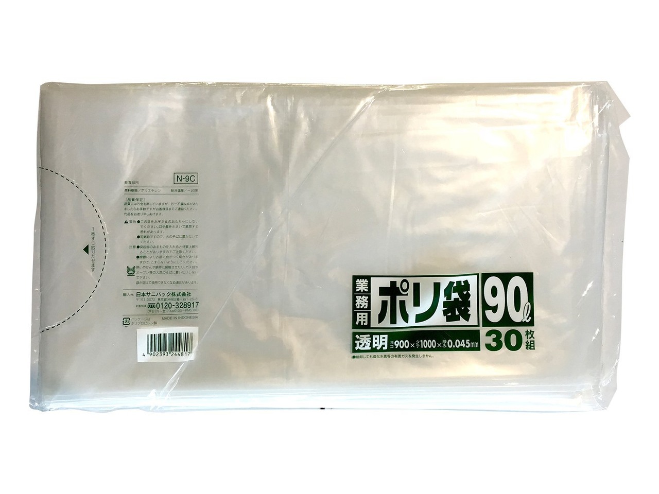 日本サニパック 業務用 ゴミ袋 90L 透明 30枚 0.045 N9C 100×90cm